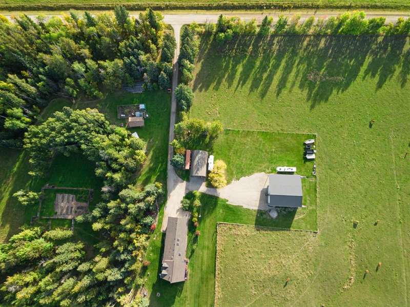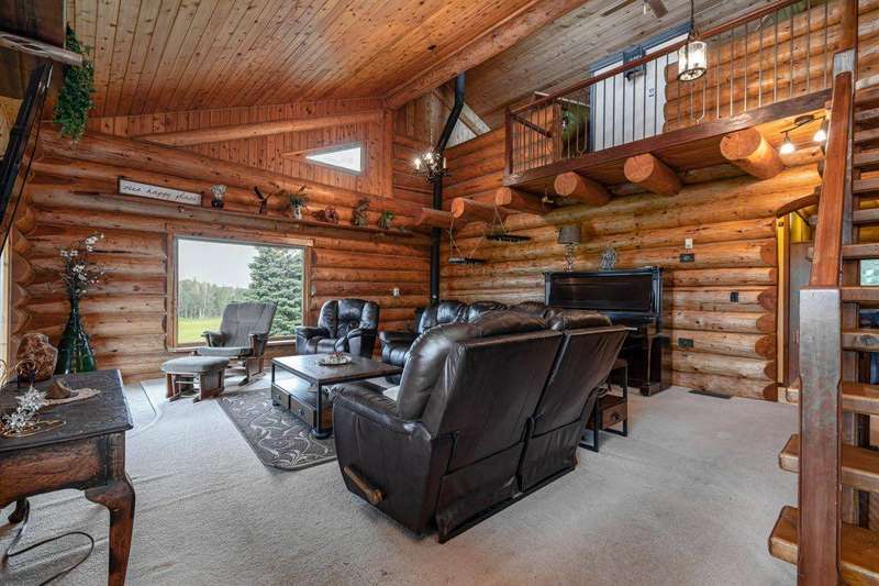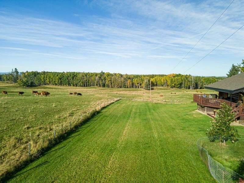 Welcome to your dream retreat — a truly rare opportunity to own a full uncut quarter section backing directly onto Crown land on the west boundary, offering ultimate privacy, unmatched natural beauty, and valuable income potential. Surrounded by towering trees and mountain views, this spectacular property offers endless outdoor recreation: hunting, fishing, quadding, snowmobiling, hiking, and snowshoeing and cross country skiing— all accessible from your own backyard. Whether you're seeking a private sanctuary or a year-round playground, this property delivers. Enjoy the peace of mind of an artesian well with stream, providing a reliable water source year-round. The property is thoughtfully developed to support a wide range of hobbies, lifestyles, and uses: • 53' x 24' attached heated garage for vehicles, equipment & recreational toys • 40' x 60' heated shop with 20' x 60' lean-to, complete with water, 30 amp plug-in, 220 power & radiant heat — perfect for craftsmen, hobbyists, or business use • Chicken coop — enjoy the simplicity and joy of farm-to-table living The charming home offers a unique blend of rustic character and modern comfort, combining the original log home with a spacious addition completed in 2000:. Original log home features a cozy Great Room with wood-burning stove, guest bedroom, full bath & laundry area, and an upper loft with office & library • The addition includes an oversized master with full ensuite, a bright and inviting dining area with expansive views, a functional kitchen with dinette and 2-piece bath, and a versatile multi-purpose room filled with natural light — perfect for hobbies, a family room, or studio space • Three skylights spray the home with natural light, creating a warm and uplifting atmosphere • Relax outdoors on the spacious covered deck, where you can take in the stunning mountain scenery and fresh air. This property also offers surface oil revenue and 90 acres leased out as pastureland, providing excellent supplemental income. If you've been searching for the perfect combination of privacy, recreation, natural beauty, and functional amenities — whether as a full-time residence, weekend retreat, or investment property — this quarter section stands in a class of its own. Properties like this are rarely available — experience the best of Alberta's wilderness lifestyle!