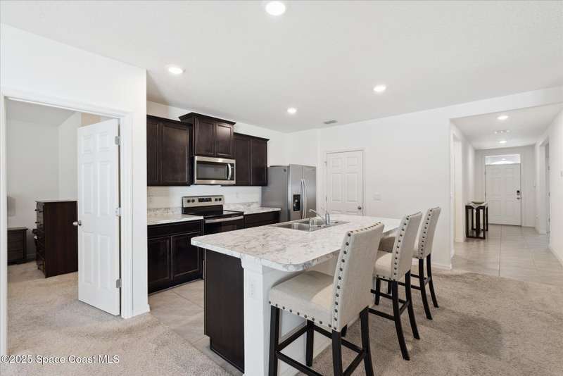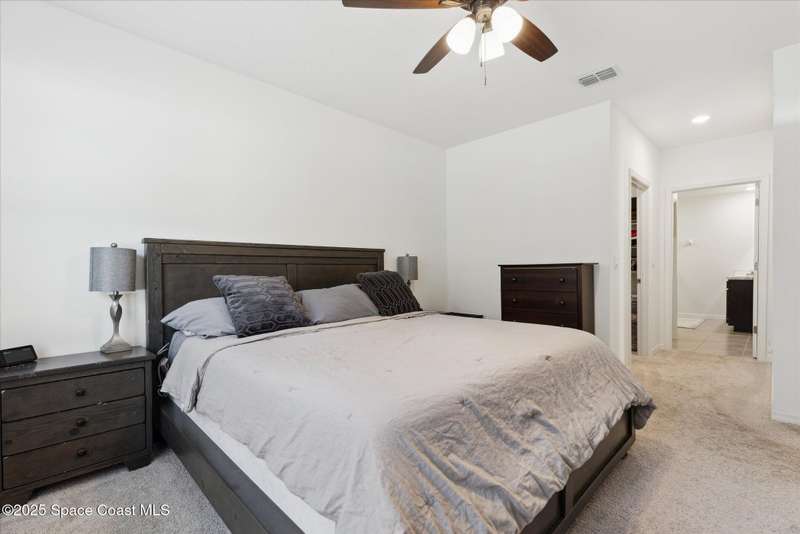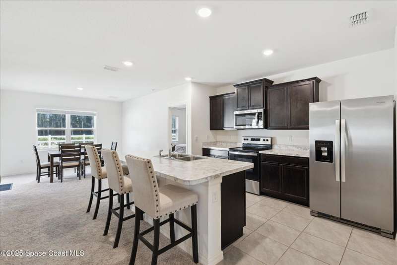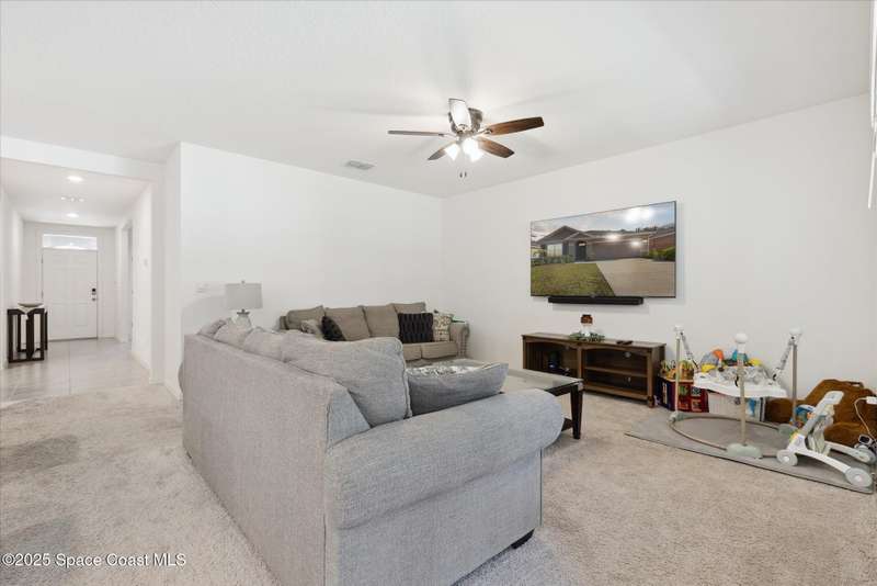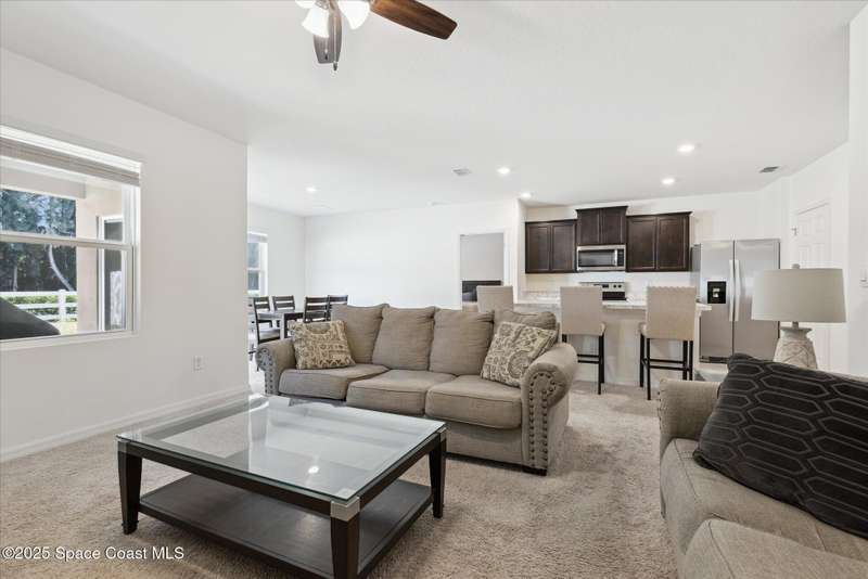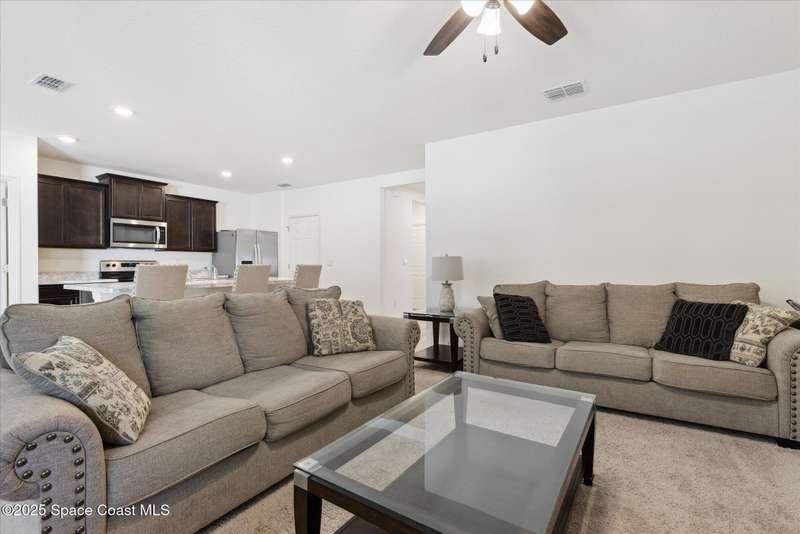 ASSUMABLE VA MORTGAGE! Located in the desirable Harvest Landing community, this 3-bed, 2-bath home offers an open-concept layout perfect for everyday living and entertaining. The kitchen features stainless steel appliances, ample cabinet space, a large pantry, and an island ideal for gathering. The oversized living room and split floor plan provide comfort and privacy, with a spacious primary suite and walk-in closets. Enjoy your morning coffee on the covered patio overlooking a private backyard-NEW FENCE being installed before closing! Community amenities include a pool, scenic walking paths, and a welcoming neighborhood feel. Just 8 min to Cocoa Village, 20 min to the beach, and 37 min to Orlando International Airport. Sellers are motivated and ready to make a deal-schedule your showing today!