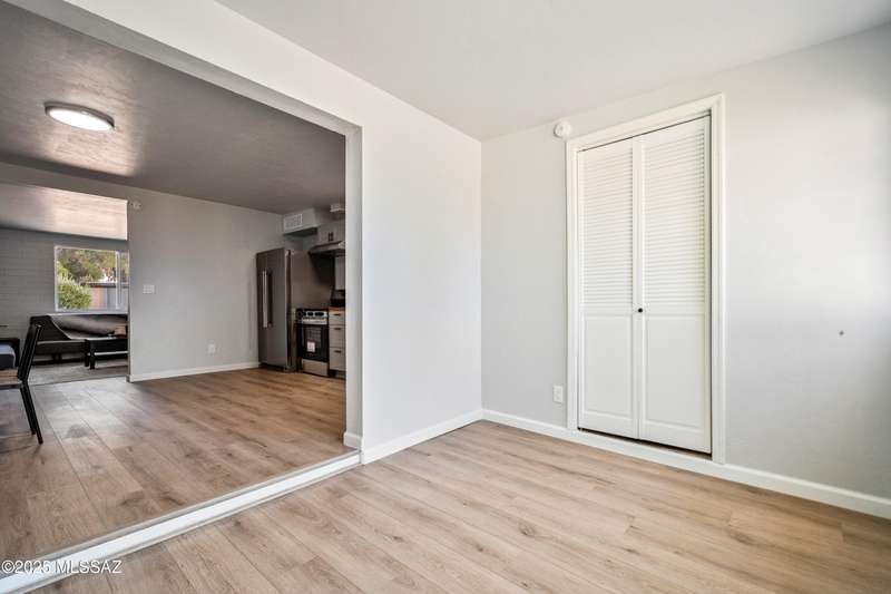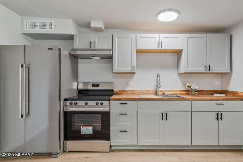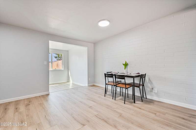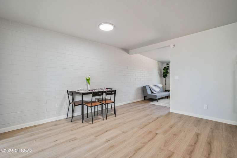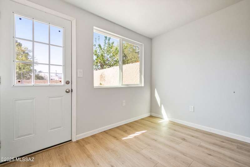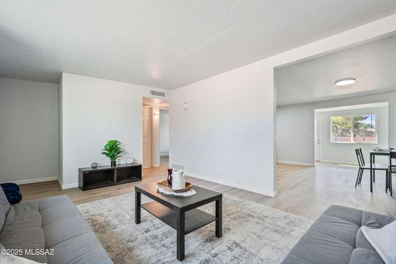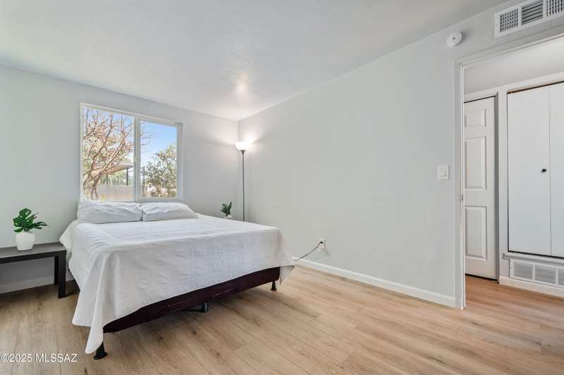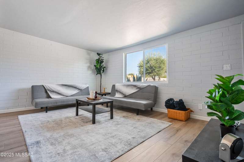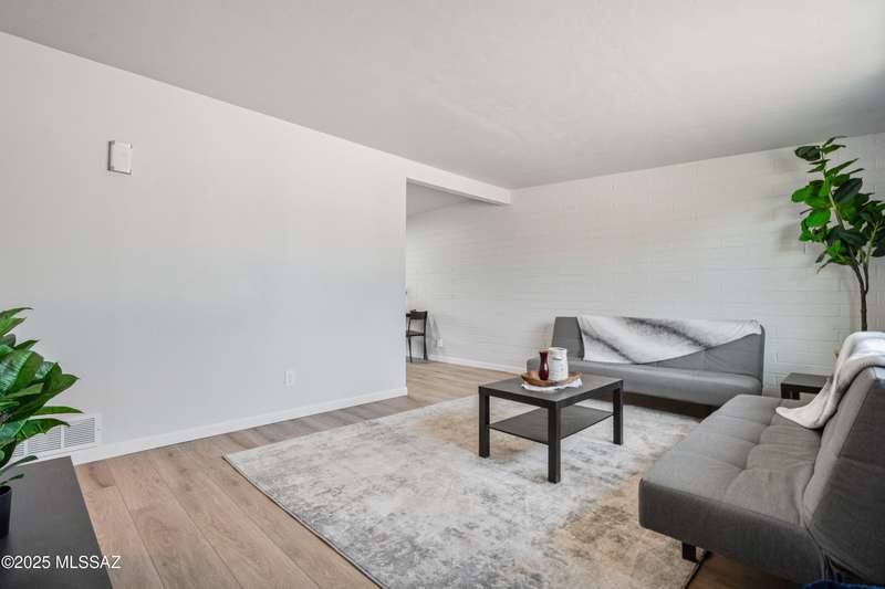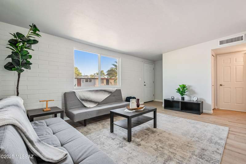 Completely renovated 2-bedroom, 1-bath townhome in desirable East Tucson, close to DMAFB, schools, shopping, and nature trails. This move-in-ready home features brand new AC, luxury vinyl flooring throughout (no carpet), and a modernized bathroom. Enjoy energy-efficient dual-pane windows, fresh interior and exterior paint, new cabinetry, butcher block countertops, and stainless steel appliances. The property includes a separate laundry/storage room and a bonus room for added flexibility. The backyard provides a citrus tree and space for gardening. This home combines comfort and convenience in a prime location.