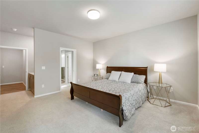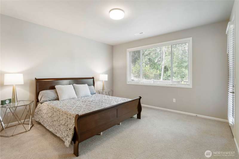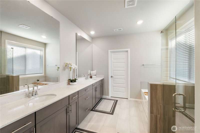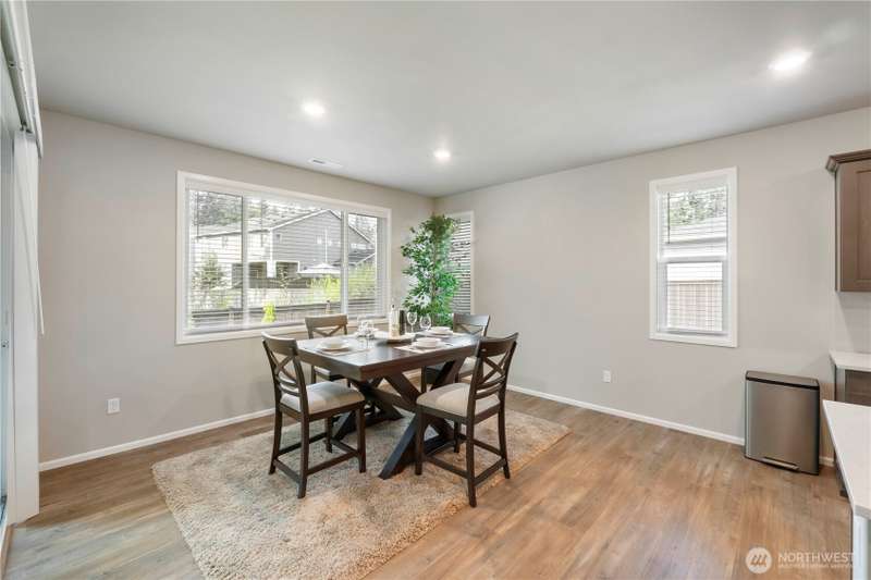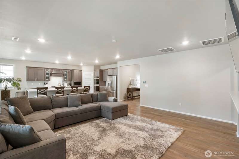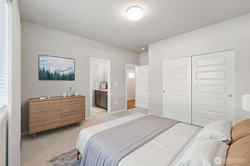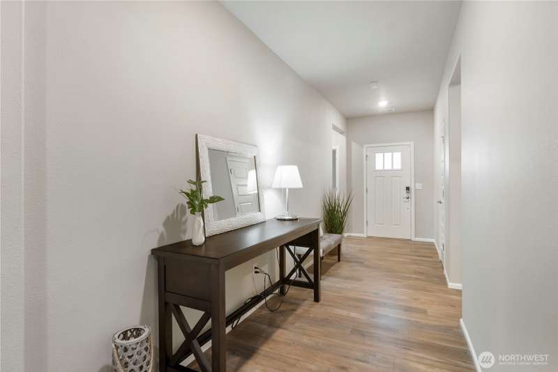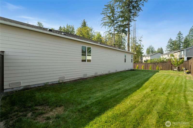 Beautiful 2-year-old rambler home in the desirable Sunrise community Puyallup! This 2,200 sq ft home features an open-concept floor plan with spacious living areas. The private primary suite offers a 5-piece spa-style bath, oversized walk-in closet, and access to the covered patio. Bedrooms 2 and 3 share a Jack-and-Jill bath, perfect for guests or multi-gen living. The chef’s kitchen includes SS appliances, double oven, gas range, quartz counters, a large island and abundant storage. Enjoy a large utility room, A/C in the summer, garage work/storage space, and fully landscaped yard with irrigation. Relax on the extended covered porch with serene wooded views in a quiet cul-de-sac. 1-year home warranty included. Move-in ready and a must-see!