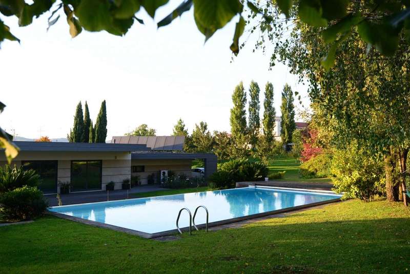 Detached single storey villa, built in 2011, modern architecture, for sale in Valongo. Property, inserted in land with about 4846m2 fully walled, allowing maximum privacy. Of careful construction and noble finishes, it highlights the nobility of the stones such as vitrified marble, black granite "Angola", the nobility of the wood and the large glazed spans that provide a unique luminosity to the house. With a practical and functional layout, this villa has a living room, dining room, music and cinema room, kitchen with pantry, a social bathroom, three ensuite bedrooms and an office. Outside there is an extensive garden and swimming pool. Equipped with central heating, underfloor heating, surround sound, alarm, solar panels and thermal and acoustic insulation. 8 minutes from the center of Valongo and 25 minutes from Porto. CHARACTERISTICS: Plot Area: 4 846 m2 | 52 162 sq ft Deployment Area: 460 m2 | 4 950 sq ft Building Area: 460 m2 | 4 950 sq ft Bedrooms: 3 Bathrooms: 4 Garage: 3 Energy efficiency: B- FEATURES: Detached single-story house Music Room and Cinema 3 Suites Garden Pool Central Heating Heated Floor