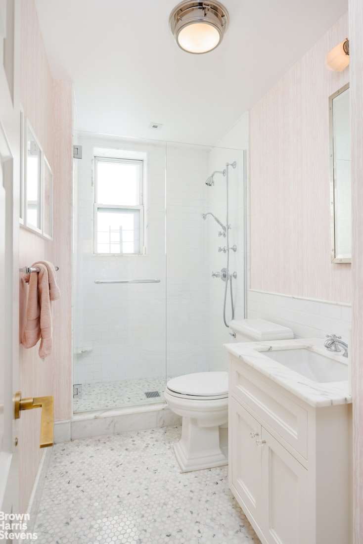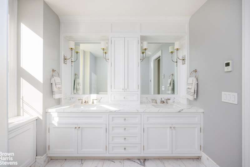 A windowed powder room with a shower is also found on this floor.Up a solid and elegant staircase are the private quarters where there are 4 large bedrooms and 3 full bathrooms.The 3 large secondary bedrooms face North. Two share a windowed hall bathroom. The third is a corner room with a River view from its Western exposure. This bedroom also has an en-suite bathroom.