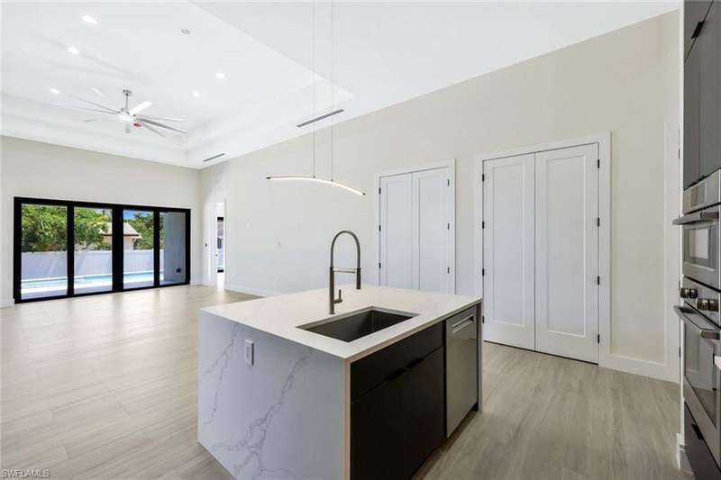Experience elevated living in this modern Construction home featuring soaring 14-foot ceilings and a sleek, open layout. The kitchen is a true showstopper, outfitted with premium Bosch appliances and contemporary cabinetry that combines style and functionality. Located on a street undergoing a remarkable transformation with multiple new builds, this home offers a unique opportunity to be part of a rapidly evolving neighborhood. Just minutes from Waterside Shops and only 10 minutes to the beach, the location is ideal for convenience and lifestyle. Enjoy Florida living at its finest with a heated, saltwater pool and a fully equipped outdoor kitchen perfect for relaxing or entertaining year-round.