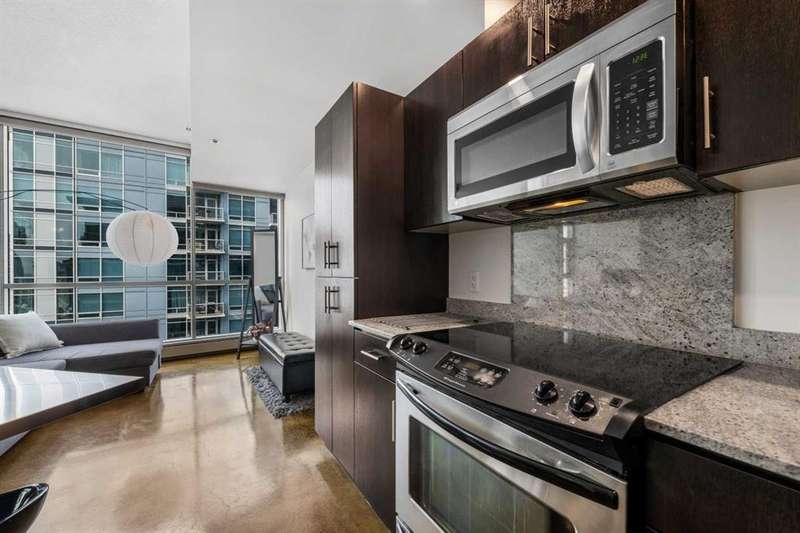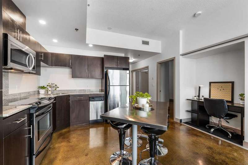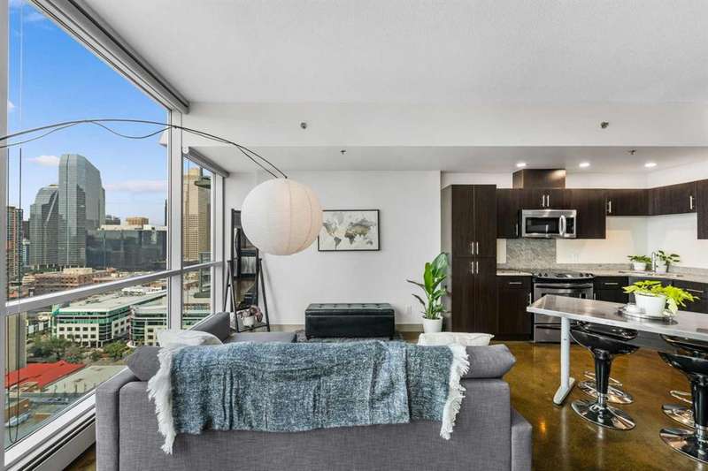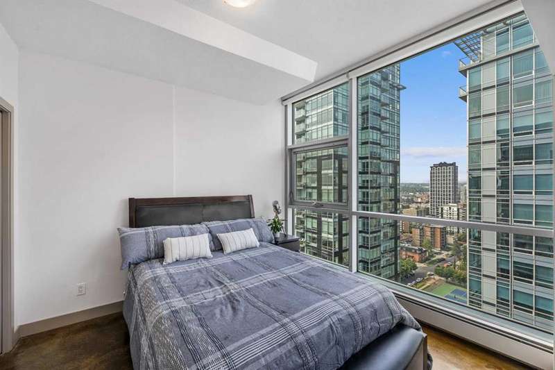 Beauty & Versatility on the 20th Floor! This gorgeous 2 bedroom home offers an attractive list price in a fantastic location. Colours is a building that is Airbnb friendly, this makes for a great home to live in and a great investment. This proud home comes fully furnished including small appliances, dishes, everything found within the doors and drawers within the home. It is ready for immediate possession, includes 1 indoor titled parking stall. The building offers a bike storage room,, and is conveniently located with Starbucks, Subway, pubs and restaurants, and countless amenities just outside the buildings front door. When visiting, be sure to take notice of the fresh paint, the upgraded doors, the new baseboards and more. Also check out the 4th floor common area, maintained with beautiful flowers offering a great space to get some fresh air and enjoy the views. This home has been lovingly maintained and is ready for you to simply move in and enjoy. Book your private viewing with your favorite Realtor and see this home today!