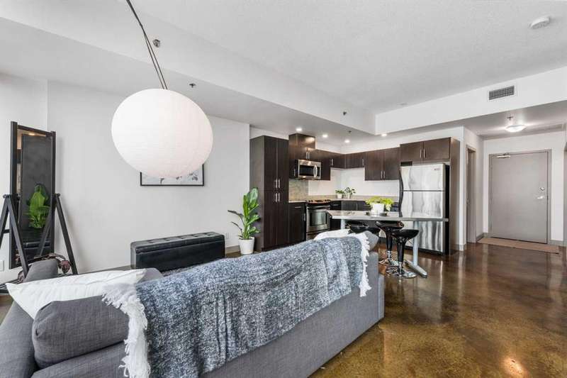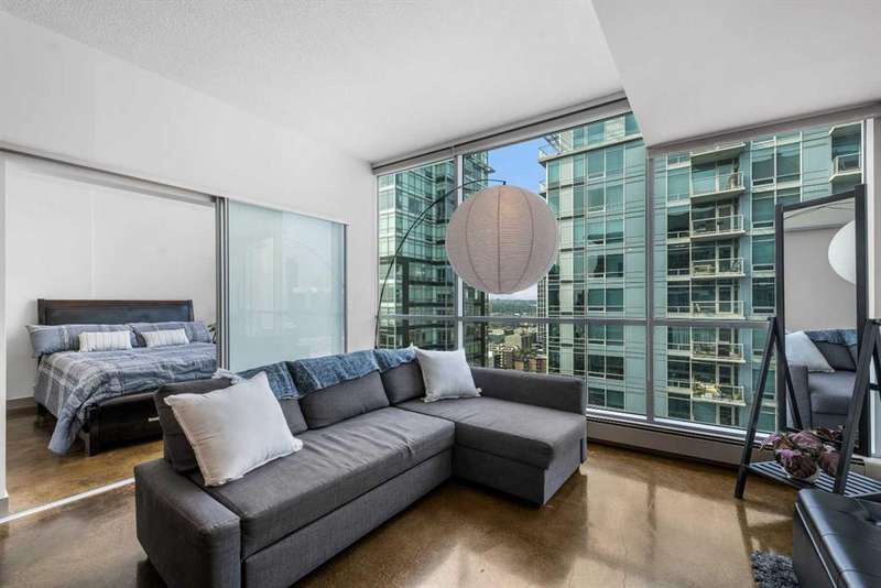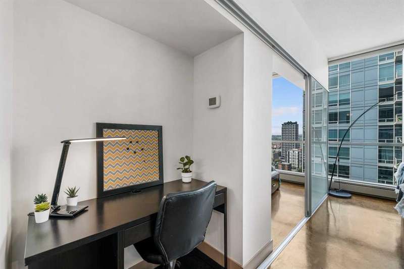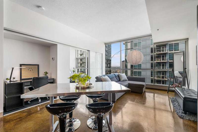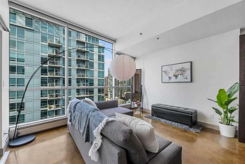Beauty & Versatility on the 20th Floor! This gorgeous 2 bedroom home offers an attractive list price in a fantastic location. Colours is a building that is Airbnb friendly, this makes for a great home to live in and a great investment. This proud home comes fully furnished including small appliances, dishes, everything found within the doors and drawers within the home. It is ready for immediate possession, includes 1 indoor titled parking stall. The building offers a bike storage room,, and is conveniently located with Starbucks, Subway, pubs and restaurants, and countless amenities just outside the buildings front door. When visiting, be sure to take notice of the fresh paint, the upgraded doors, the new baseboards and more. Also check out the 4th floor common area, maintained with beautiful flowers offering a great space to get some fresh air and enjoy the views. This home has been lovingly maintained and is ready for you to simply move in and enjoy. Book your private viewing with your favorite Realtor and see this home today!