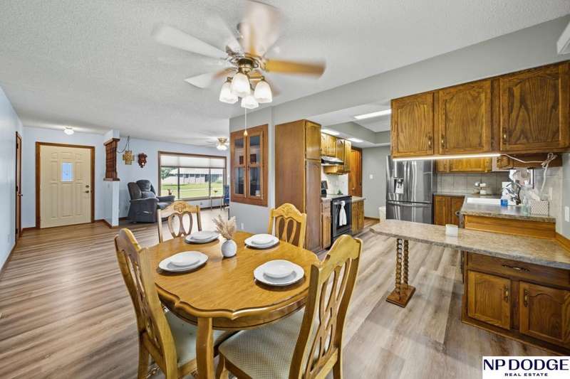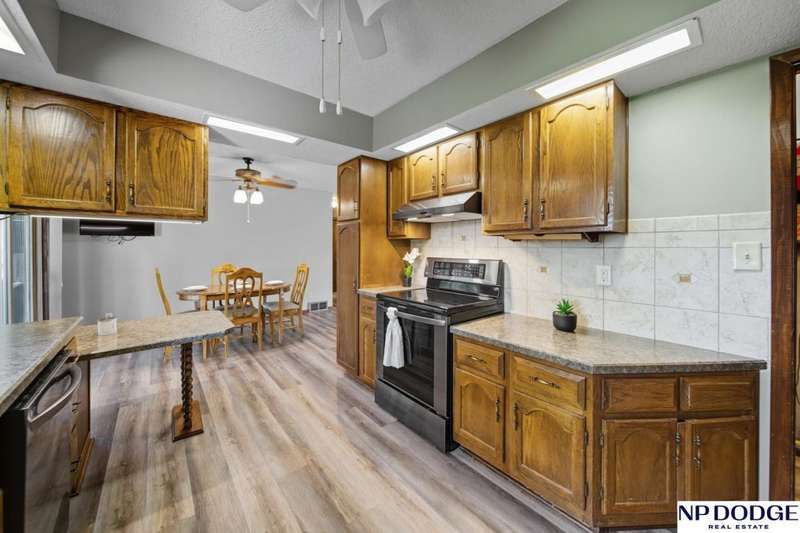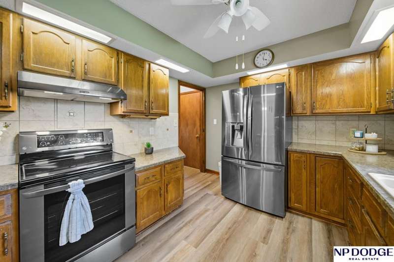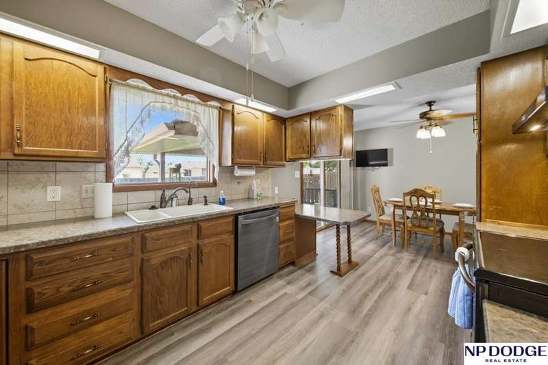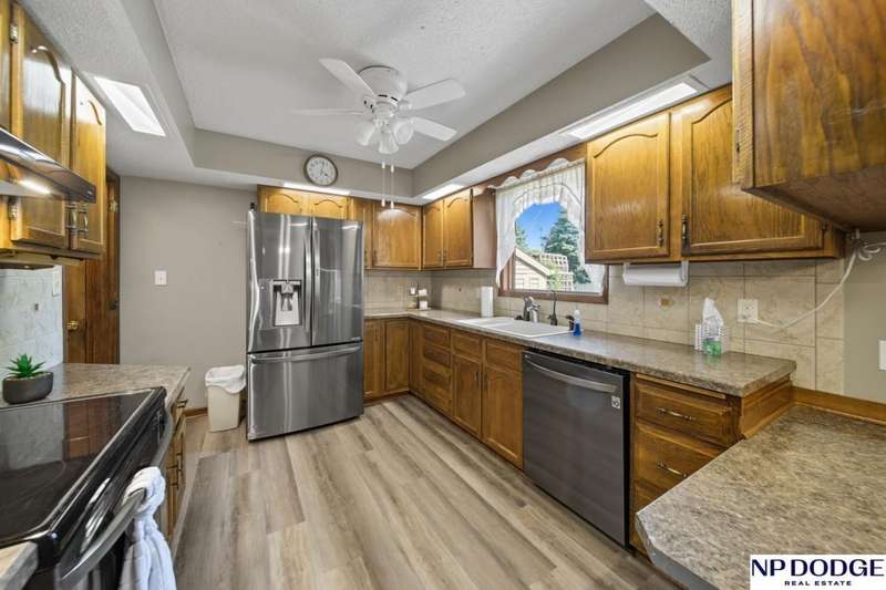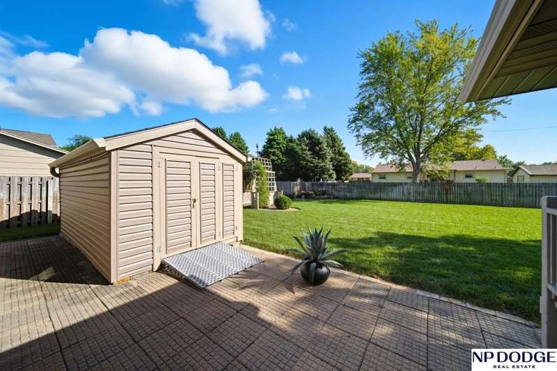 Beautifully maintained and solidly built, this home offers thoughtful updates and plenty of space inside and out! The main floor features wide-plank LVP flooring (2024) in neutral tones, newer Pella windows, and two spacious bedrooms, including a primary suite with double closets and a 3/4 bath. The main bath has a solid-surface counter vanity, tile floor, and walk-in shower. Enjoy the convenience of main floor laundry (washer/dryer stay) and a large kitchen with newer appliances, a deep sink, and views of the landscaped backyard plus an abundance of cabinet space. Step outside to the covered deck, patio, and handy shed. Exterior updates include vinyl siding, gutters, and a newer roof. The lower level offers a huge family room with a bar area, 1/2 bath, non-conforming room, and tons storage.