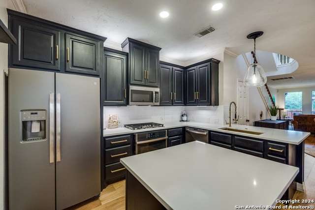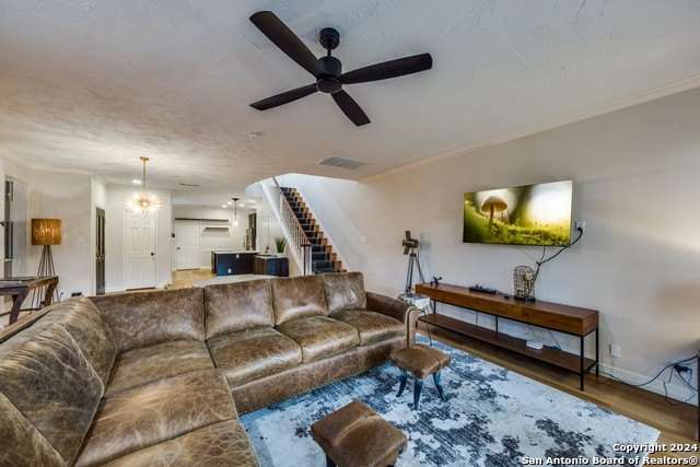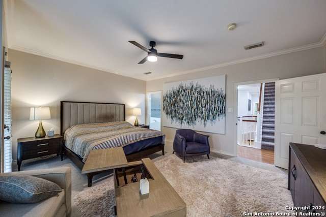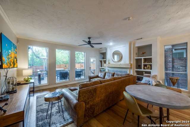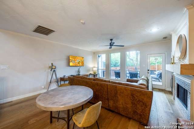 Welcome to this beautifully designed, fully furnished 3-story townhome located in the highly desirable Alamo Heights neighborhood. Offering four spacious bedrooms, 3.5 bathrooms, and an expansive 2,818 square feet of living space, this home features an open floor plan with hardwood flooring throughout the main common areas and cozy carpeting in the bedrooms. The kitchen boasts sleek quartz countertops and modern appliances, perfect for any home chef. The primary bedroom includes a private balcony, while the