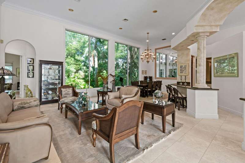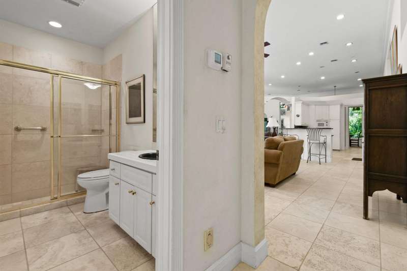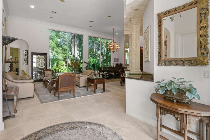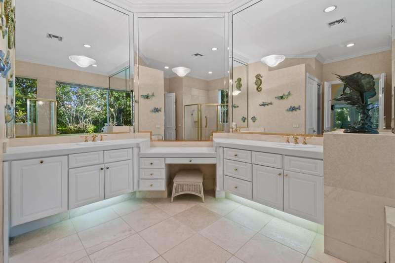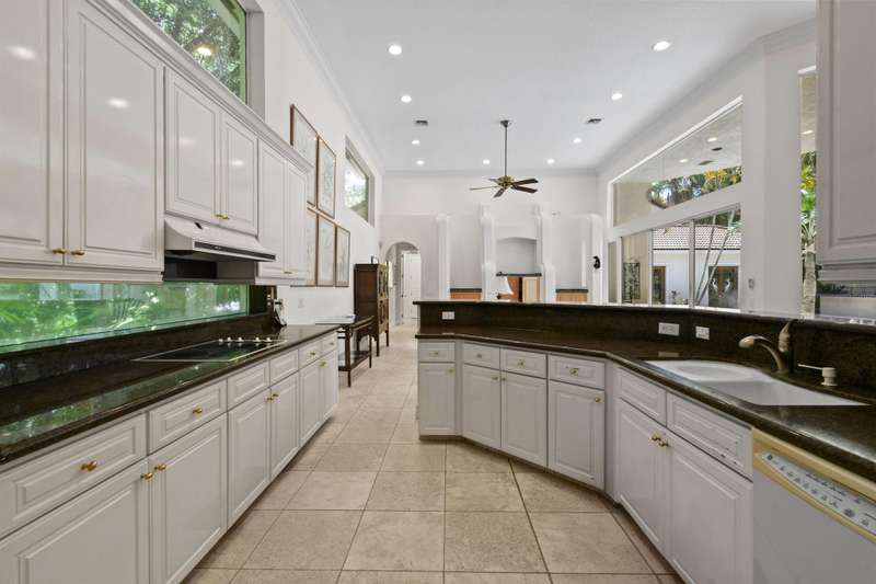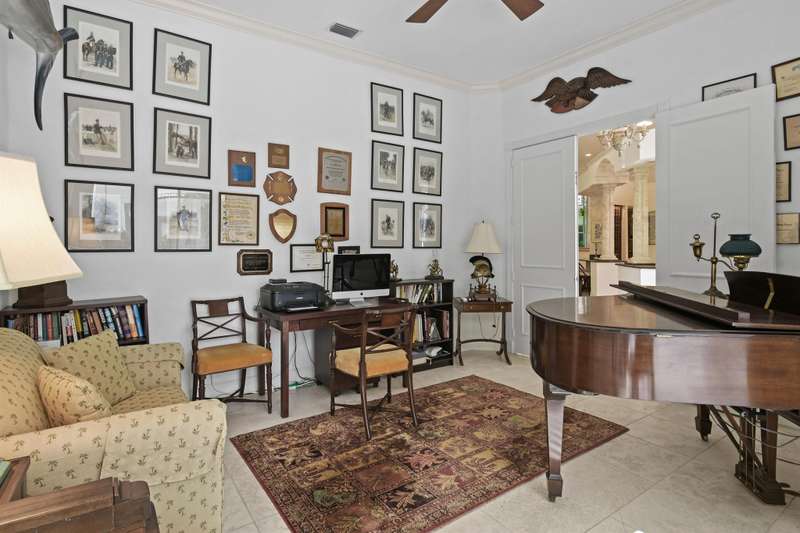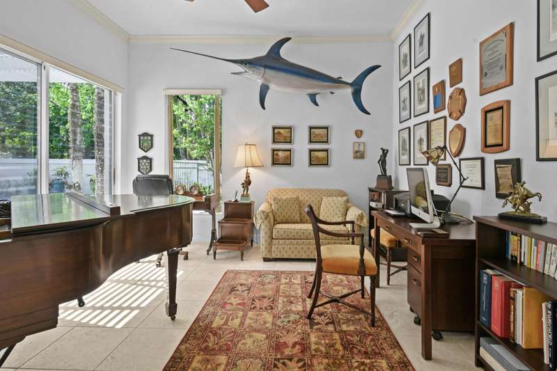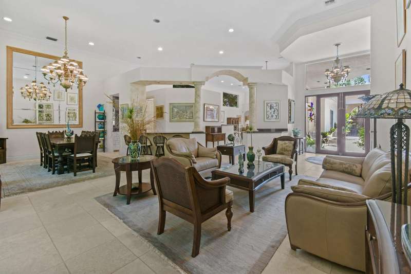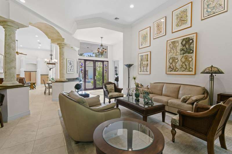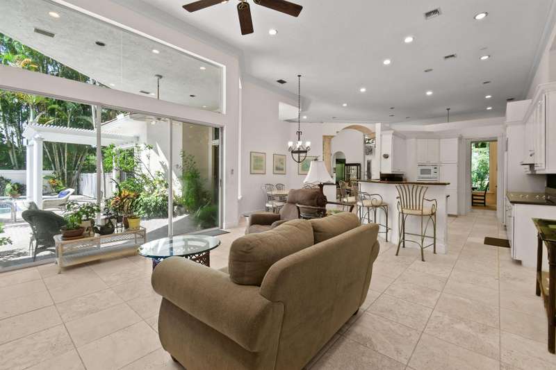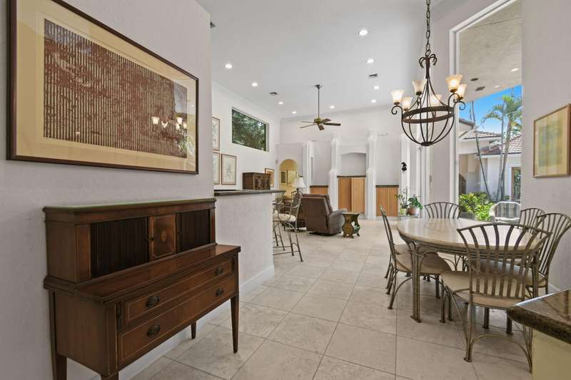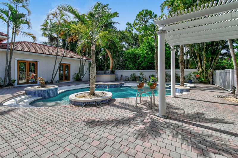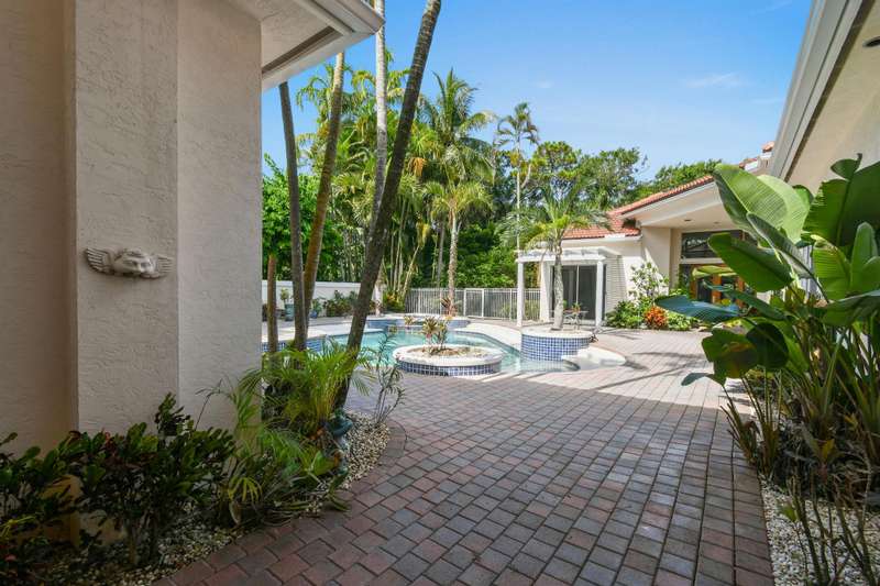 This home is in Old Trail located in Ranch Colony, a gated luxury community. An acre-plus courtyard home featuring a hand-carved imported doors. Three bedroom and three baths, with a guest house surrounding the pool with a spa. Fourteen-foot ceilings, a formal living room, a dining room, and a spacious primary bedroom. Enjoy the privacy and security of Old Trail and join Jonathan's Landing's and play three golf courses. New roof in 2022. Drive 25 minutes to the beach and 40 minutes to Palm Beach Airport.