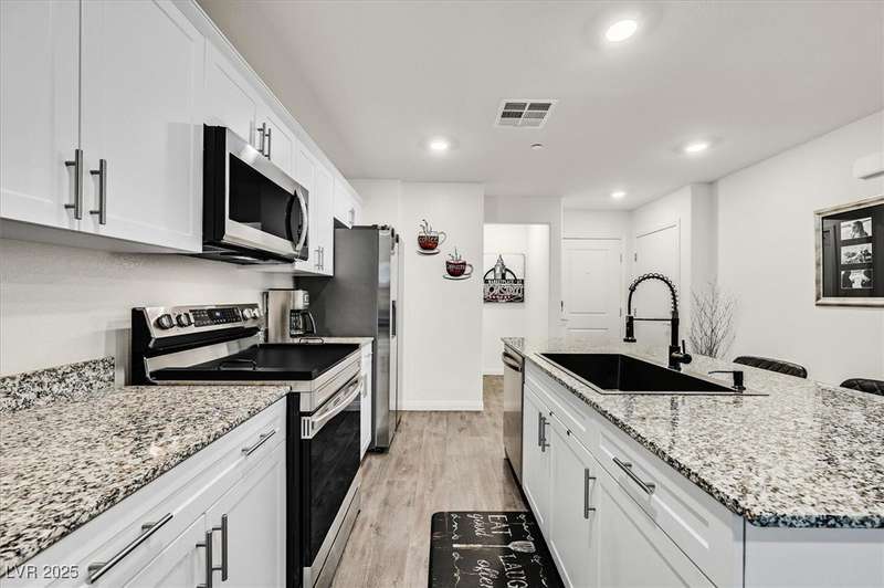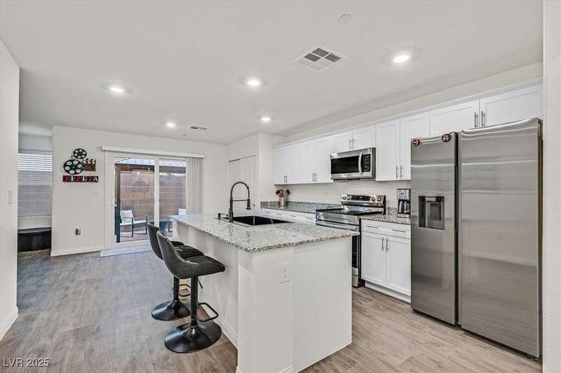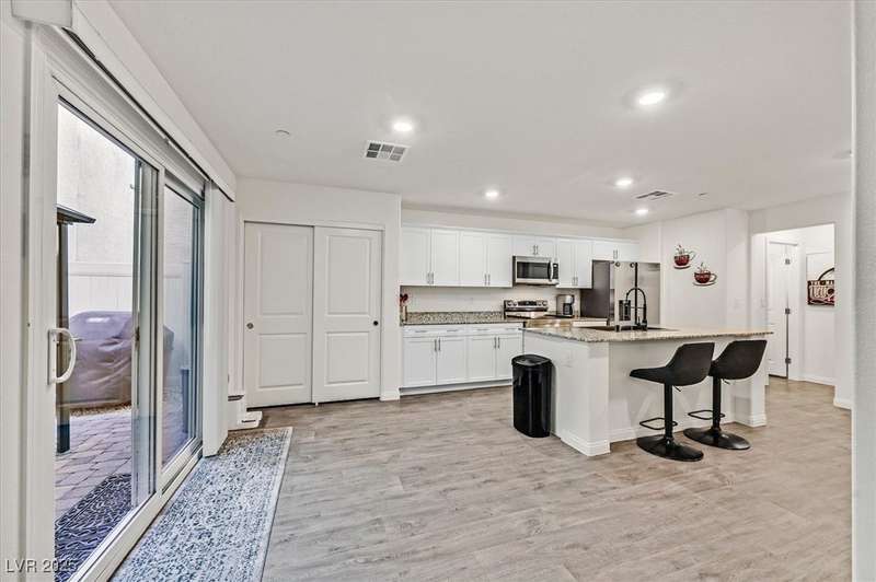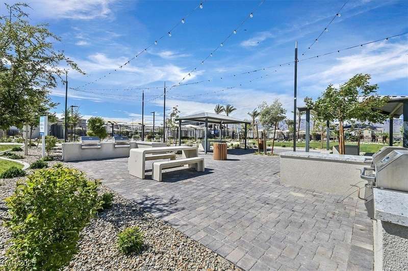 Experience resort-style living in this beautifully upgraded Indigo Plan 542 at Watercolor. This home offers 1,577 SF of open-concept living space, featuring 3 spacious bedrooms, 2.5 bathrooms, a versatile loft, and an attached 2-car garage. All SS Samsung appliances, high-efficiency zoned AC, and blinds are included, making this home truly move-in ready. Thoughtful upgrades add even more value, including ceiling fans, TV pre-plumbed to conceal wiring, a stylish single-basin sink with upgraded faucet, and a charming backyard gazebo. As a Watercolor resident, you’ll enjoy exceptional community amenities: multiple pools with shaded cabanas, playgrounds, basketball courts, BBQ areas, and a pet-friendly park. The HOA even covers internet and cable for added convenience and value. Ideally located with quick freeway access, this home is just minutes from the VA Hospital, Aliante Resort & Casino, and nearby shopping centers. The loan is assumable for a slightly shortened mortgage term.