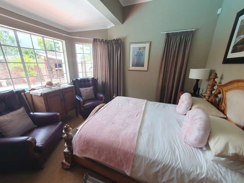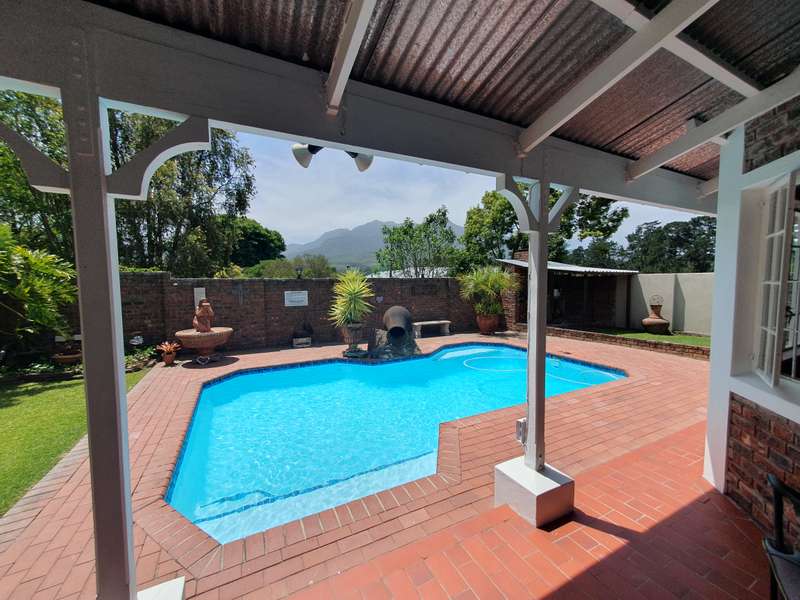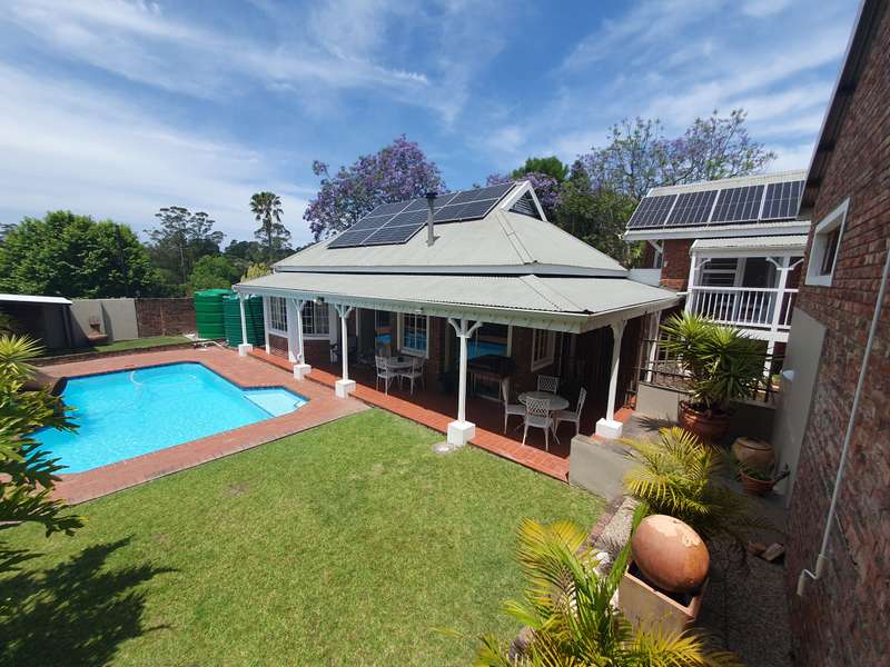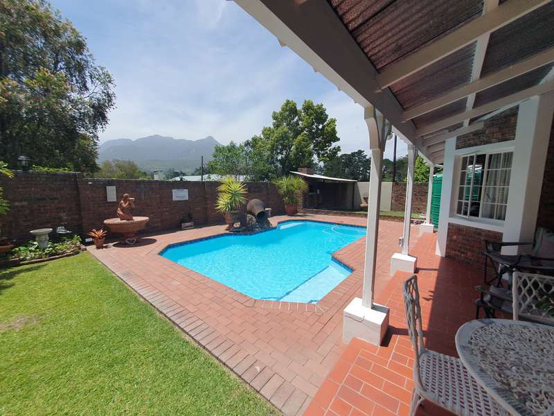 Welcome to your dream home in the heart of Heather Park, a sought-after suburb close to George Airport and amenities. This low-maintenance gem is nestled in a quiet cul-de-sac on a generous 1253sqm stand, offering a lifestyle of comfort and convenience. Key Features: Main House (452sqm): • 3 En Suite Bedrooms • Lounge and Dining Room/Braai Room • Open-Plan Kitchen with Separate Scullery • Undercover Stoep Leading to Garden • Sparkling Pool with Majestic Mountain Views • Outdoor Braai Area • Double Garage and Ample Secure Parking • Loft Area (Perfect for Studio or Extra Storage) Modern Flatlet: • 2 Bedrooms • 1 Bathroom • Open-Plan Lounge and Kitchen • Covered Parking Additional Features: Entertainment Room: • Separate Entrance • Jacuzzi • Ideal for Home Schooling, Private Gym, Studio/Office Space • Ample Parking Space • Detached from Main House Extras: • Storeroom • Loft Area • Security Beams and Burglar Bars • CCTV for Added Security • 2 x KW Sunsynk Invertor with 4 x KW Batteries • 16 Solar Panels • Borehole with Water Filter System • Water Tanks • Gas and Electric Geysers Why Choose This Property? This property is more than a home; it's a lifestyle. With spacious living areas, a modern flatlet for extended family or rental income, and an incredible entertainment room, the possibilities are endless. Enjoy the tranquillity of the cul-de-sac while being close to essential amenities and the George Airport. Don't miss the chance to explore the full potential of this property. Don't delay, act today, call Annie to schedule a viewing and make this house your new home!