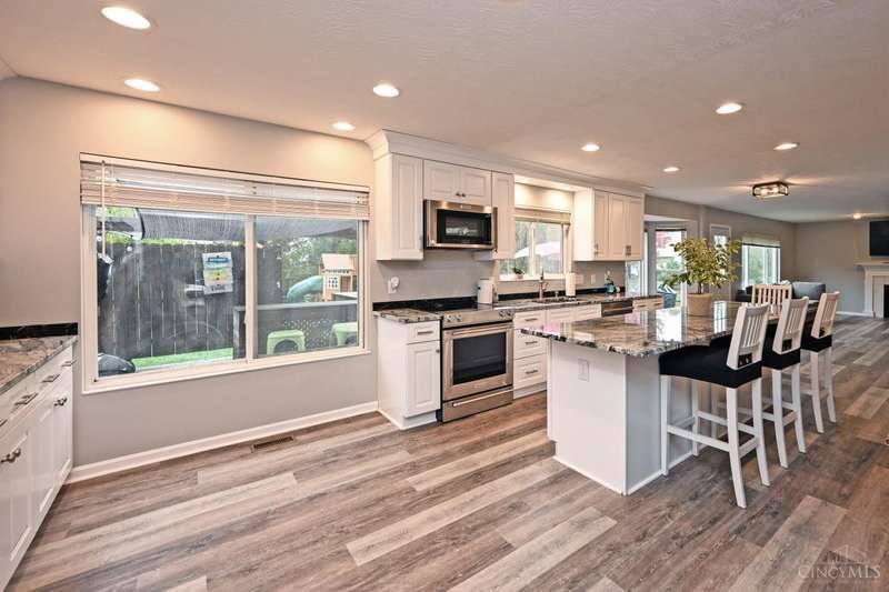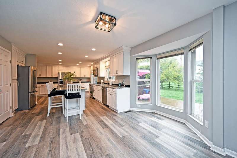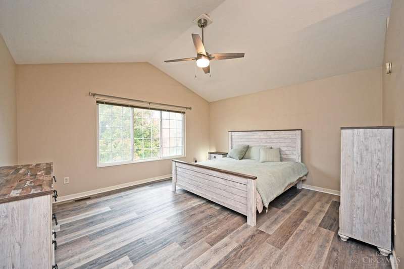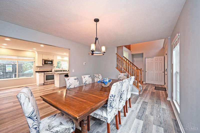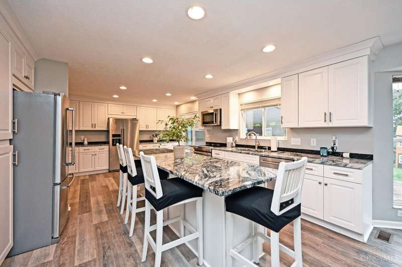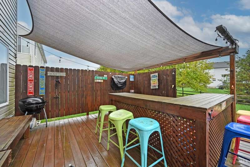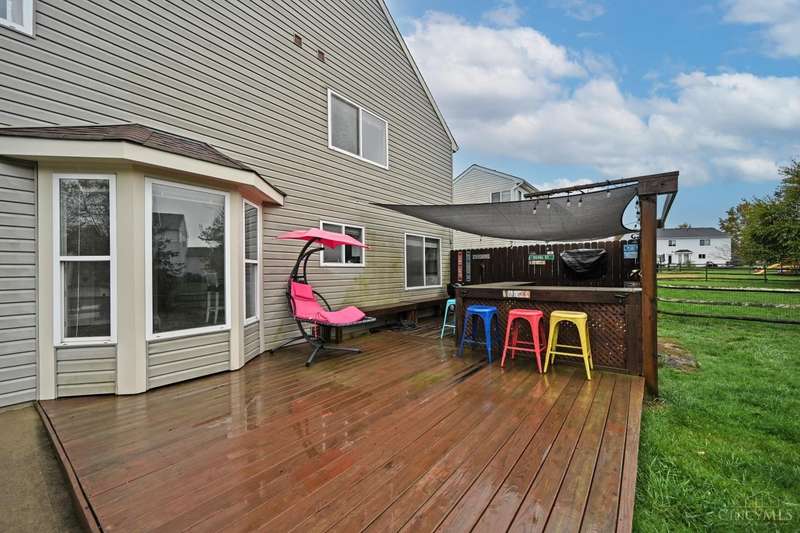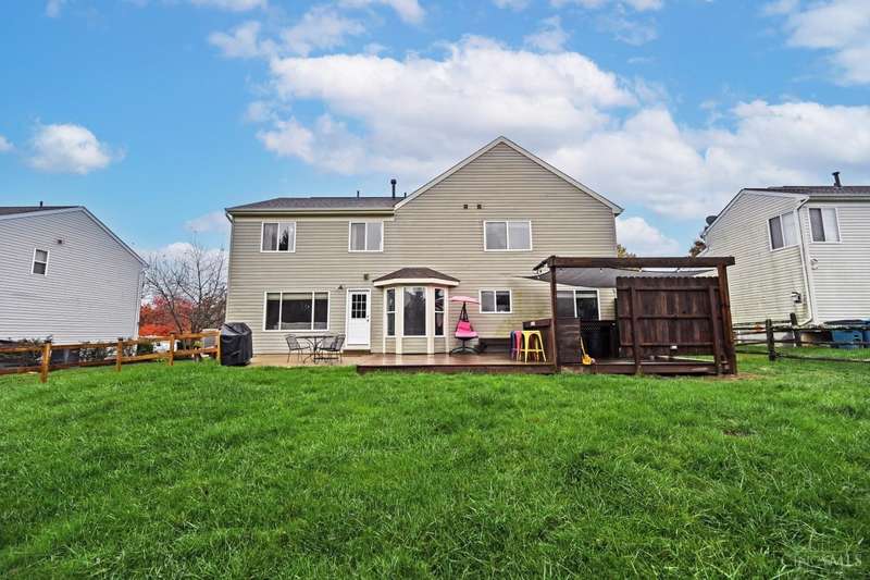 Welcome to this beautifully updated home showcasing a grand two-story entry & open, light-filled floor plan. The stunning new kitchen is a chef's dream w/granite countertops, stainless steel appliances, multiple refrigerators, huge center island, & an abundance of counter & cabinet spaceperfect for cooking, entertaining, or gathering w/friends & family & flows to the dining room & family room creating a fabulous heart of this home, flooded w/light through floor to ceiling windows. Laminate flooring flows throughout both floors for a contemporary feel. Upstairs, you'll find a luxurious vaulted primary suite w/adjoining bath w/soaking tub & walk in closet. The large 2nd floor also features convenient second-floor laundry room, huge landing & the additional 3 bedrooms have ample space. The back yard oasis has a patio, deck w/bar area, is fully fenced. Basement has studs ready to finish w/bath rough in. True move in condition w/AC 2019 & Furnace 2022.