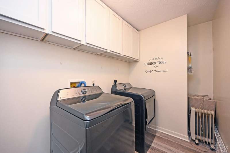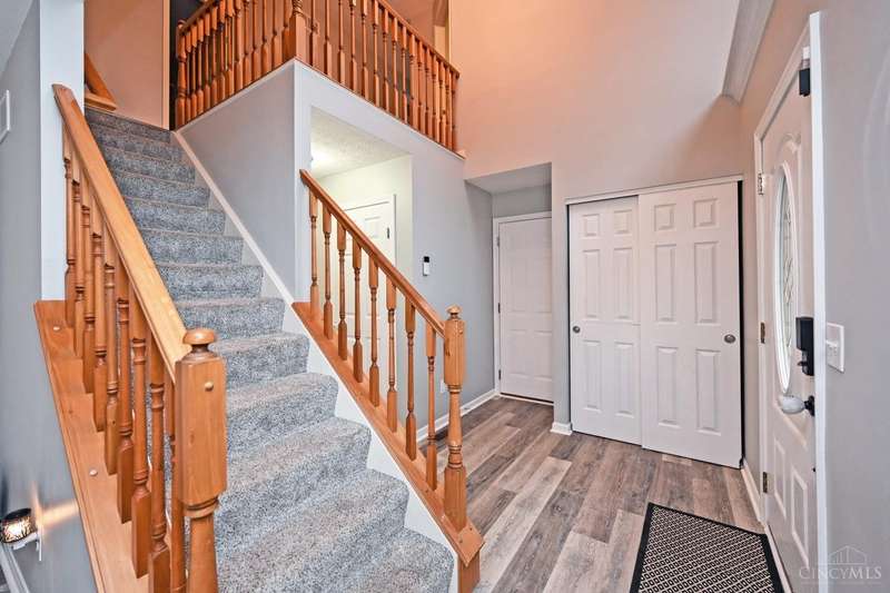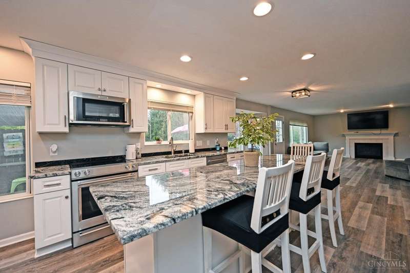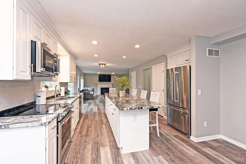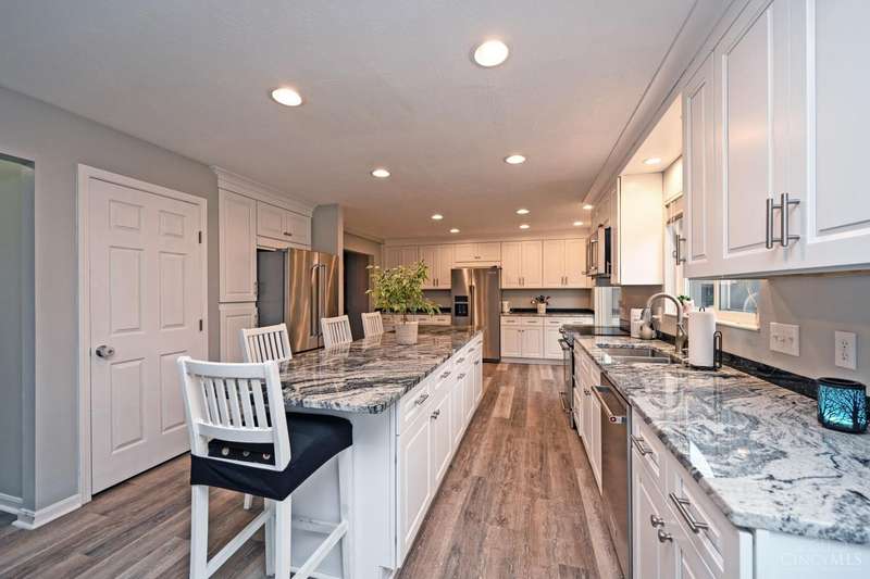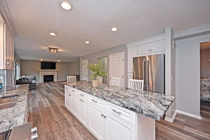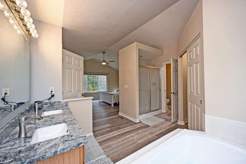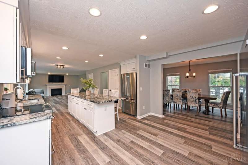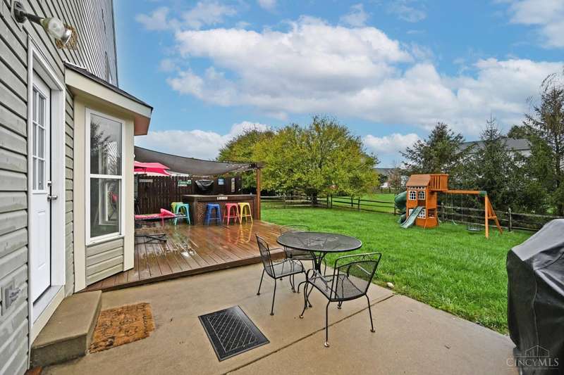 Welcome to this beautifully updated home showcasing a grand two-story entry & open, light-filled floor plan. The stunning new kitchen is a chef's dream w/granite countertops, stainless steel appliances, multiple refrigerators, huge center island, & an abundance of counter & cabinet spaceperfect for cooking, entertaining, or gathering w/friends & family & flows to the dining room & family room creating a fabulous heart of this home, flooded w/light through floor to ceiling windows. Laminate flooring flows throughout both floors for a contemporary feel. Upstairs, you'll find a luxurious vaulted primary suite w/adjoining bath w/soaking tub & walk in closet. The large 2nd floor also features convenient second-floor laundry room, huge landing & the additional 3 bedrooms have ample space. The back yard oasis has a patio, deck w/bar area, is fully fenced. Basement has studs ready to finish w/bath rough in. True move in condition w/AC 2019 & Furnace 2022.