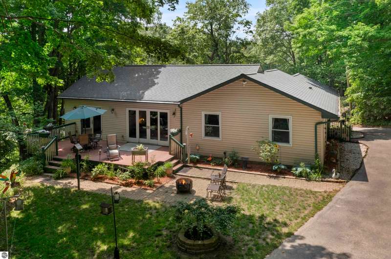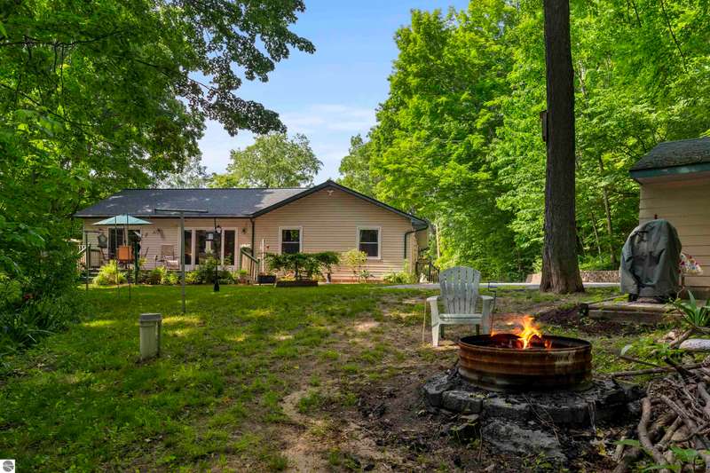 Tucked into the rolling hills just outside the charming coastal town of Frankfort, this four-bedroom, two-bath hillside retreat offers the ideal mix of privacy, space, and accessibility. Perfectly located along scenic M-115 between Beulah and Frankfort, the property spans over 10 acres and puts you minutes from Crystal Lake, Lake Michigan, the Betsie Valley Trail, Crystal Mountain, and Sleeping Bear Dunes National Lakeshore. Hop on your bike and in just 1.5 miles, you'll be at the iconic Betsie Valley Trail--perfect for walking, riding, or cross-country skiing year-round. Inside, over 2,200 square feet of living space includes a bright living room that opens to a spacious deck overlooking peaceful wooded views--an ideal place for morning coffee or evening stargazing. Outdoors, gather around the fire pit, explore wooded trails, and enjoy generous storage with both an attached one-car garage and a 12x20 outbuilding for all your up-north gear and toys. Whether you're dreaming of a quiet year-round residence or a four-season Northern Michigan basecamp, this property offers the best of both worlds--natural beauty and everyday convenience just minutes from Frankfort's vibrant downtown, sandy beaches, and welcoming community.