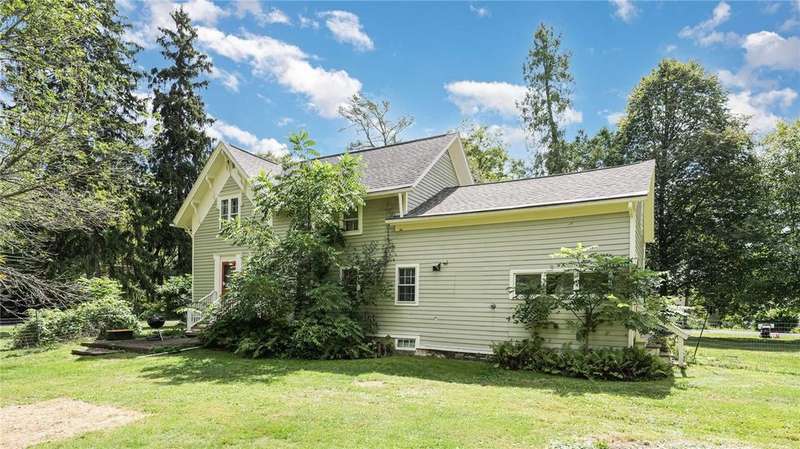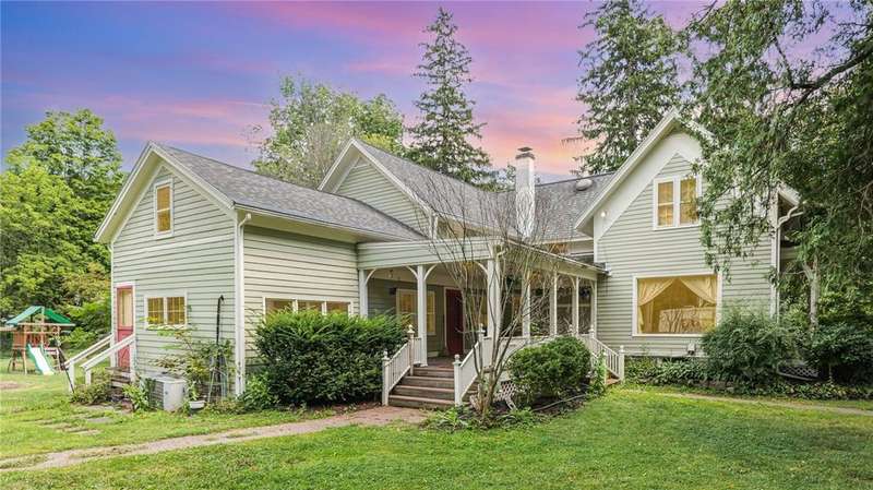 This is the Trumansburg home you have been looking for! An historic 4 bedroom home on a large corner lot, only a couple of blocks from Main Street!The generous entry hall connects the formal dining room to the large living room which is the full width of the house and has windows on 3 walls, inc. French doors opening out to the covered Gothic style porch. The light streams in, even on overcast days! These first floor rooms still feature their original Greek key door and window moldings. The staircase has been updated to create very comfortable access to the 2nd floor hall and 4 spacious bedrooms and a full bath. The 2nd floor also has its the original beautiful wide pine flooring. The back part of the home includes a kitchen, a 1/2 bath, laundry room and large family room as well another very ample open porch that gives direct access to the parking area off of Pease St. The current owner has replaced the roof, the hot water heater and furnace with AC within the last 7 years. The unfinished 2nd floor area over the family room offers the opportunity to convert it to a cathedral-like 2 story space. The home has multiple doors leading out to a beautiful Village lot that features a number of larger and varied types of trees. Plan to come to the Open House on Sat. Sept. 20th, 11-1.