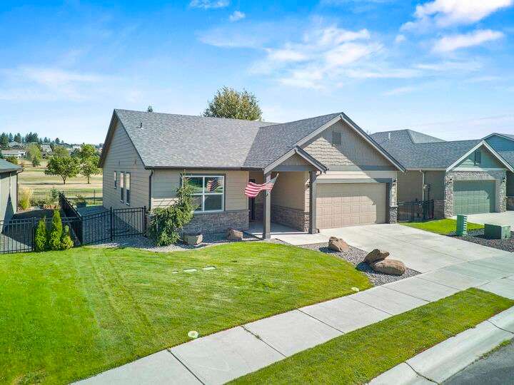 Welcome to Fairway Greens! This meticulously maintained 3bd/2bth home is located on the 8th hole fairway of the Plains Golf Course, offering sweeping views, wide open skies and the occasional free golf ball. This one-owner home has it all: open concept main-floor living, vaulted ceilings, gas fireplace, tankless water heater, central AC and a primary suite with a walk-in closet and large 3/4 bath. The spacious and open kitchen boasts a large island and breakfast bar, gas range, pantry, stainless steel appliances and quartz countertops. There's a zero-step attached garage and a fenced back yard that backs right on the golf course. The HOA is $186.65/month and covers, water, sewer, common area maintenance and snow plowing. Centrally located, this peaceful retreat is close to a brand new park, the freeway, Cheney and Spokane. This property is a true Hole-In-One!
