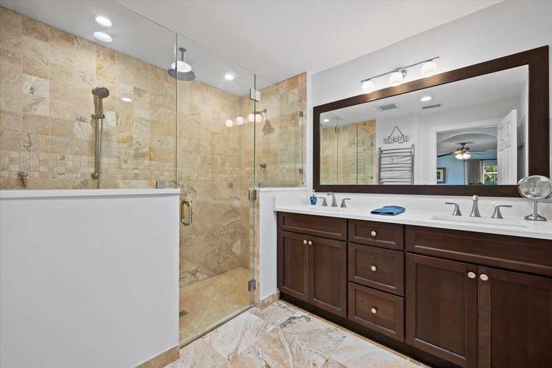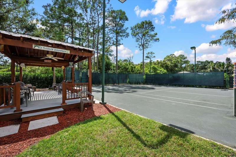 Is tennis your dream? Then this is your dream come true--the ball is in your court! Set at the end of a quiet, paved cul-de-sac is a beautifully landscaped 1.04 acre lot with landscape lighting and a cobblestone driveway. This distinctive 3-bedroom plus den, 3-bath residence is a private paradise for tennis lovers and outdoor enthusiasts. Play every day on your regulation-size Har-Tru (clay) tennis court with eight professional 1,000-watt metal-halide lights (newer ballasts and bulbs) for evening matches and a 10-foot fence on 3 sides for optimal play. An automatic above-ground sprinkler, fed by well water, keeps the court in peak condition. Between sets, relax in the stunning 10' x 20' cedar gazebo with Trex flooring, ceiling fan, electric lighting and fire pit! An entertainer's