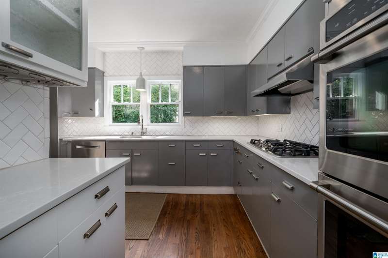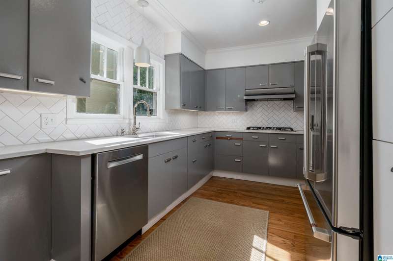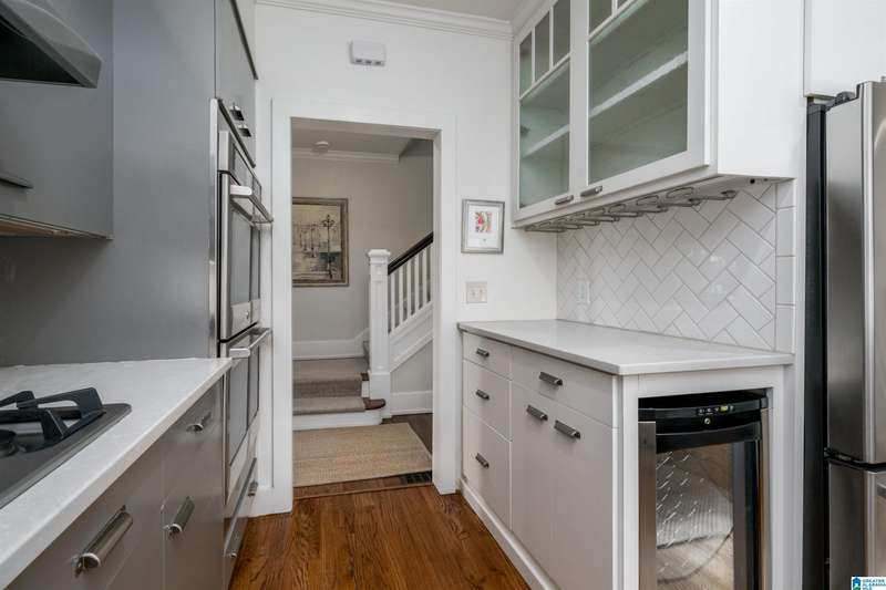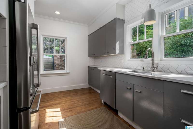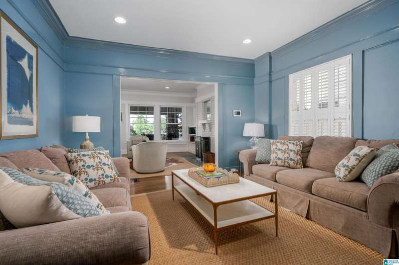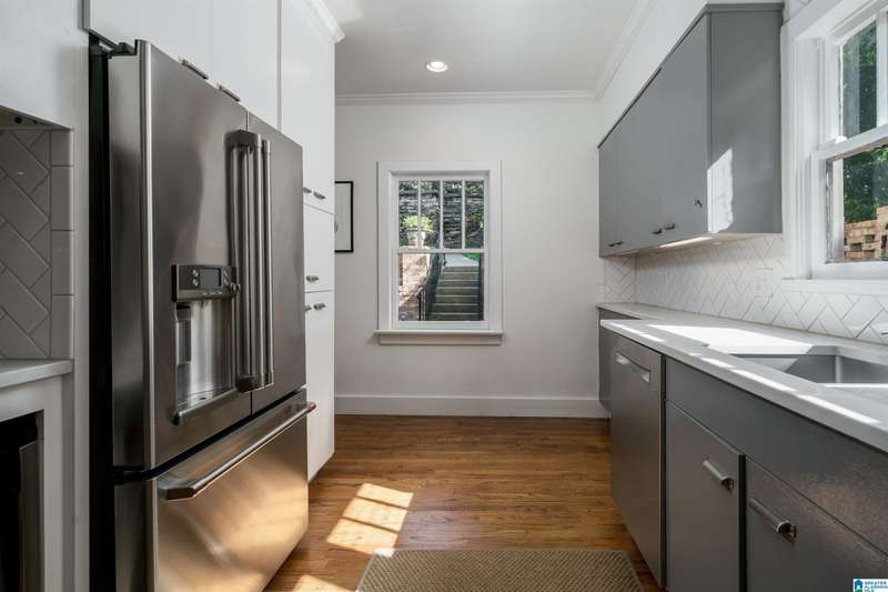 Fall in love with this beautifully updated 112-year-old Craftsman with incredible views of Birmingham from the spacious front porch. The large living room features refinished hardwoods, abundant natural light, recessed lighting, a fireplace, and built-in bookcases. The elegant dining room is perfect for entertaining, and the spacious family room connects to a powder room and a stunning kitchen with custom cabinetry, wine bar, stainless appliances, stone counters, and herringbone backsplash'all while preserving vintage charm. Upstairs are 3 large bedrooms, an updated hall bath, and a second fireplace. The primary suite features a custom bath with double vanity and a huge walk-in closet with laundry. The terraced backyard offers a patio, storage room, and plenty room to garden or play. Stairs lead to private alley parking for 3 cars.