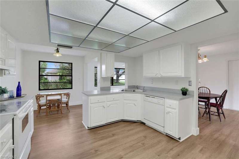 Live the Naples lifestyle in this charming & spacious single-family home just minutes from downtown Fifth Avenue and the beach. Offering two spacious bedrooms, two full baths, and a flexible bonus space perfect for a den or home office, this thoughtfully designed home combines comfort with versatility. Step inside to an inviting, open-concept layout accented by graceful arched walls and stylish, low-maintenance vinyl plank flooring throughout. The bright, cheerful kitchen features crisp white cabinetry, abundant counter space, and a generous pantry. Enjoy meals in the separate dining room or start your mornings in the cozy breakfast room overlooking the landscaped yard. The oversized driveway and attached two-car garage provide ample parking and storage - perfect for hosting guests or storing beach gear and bikes. All of this so close to the vibrant shops and restaurants of Fifth Avenue and Naples' pristine beaches. Whether you're seeking a year-round residence or a seasonal escape, this home is your perfect Florida retreat.