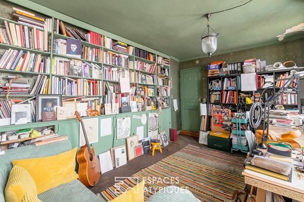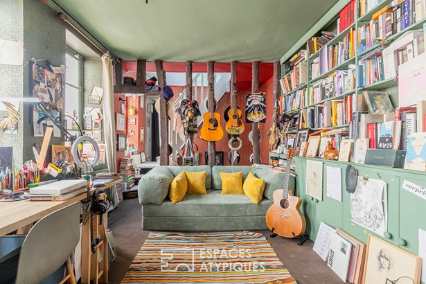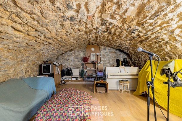 In the basement, beneath a stone vault, a soundproof and fully independent creative space has been fitted out, allowing everyone to express themselves freely.