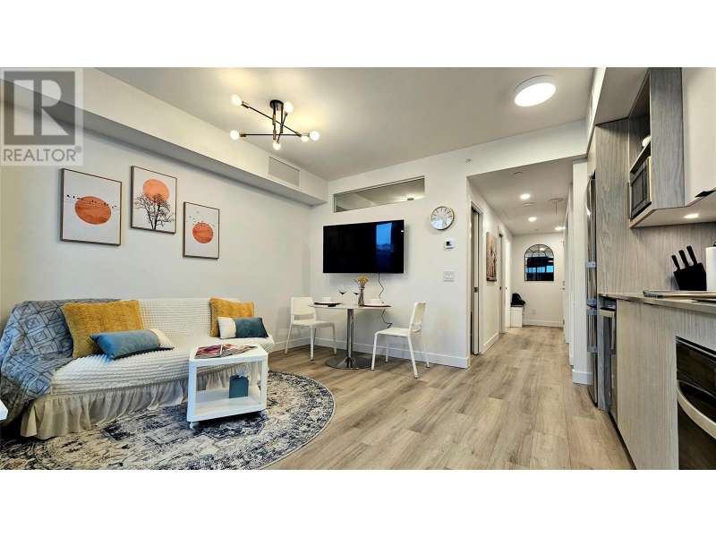Experience modern urban living in this stunning junior one-bedroom home, perched on the 13th floor of the elegant Bertram building in vibrant downtown Kelowna. This west-facing unit bathes in natural light, offering views of Okanagan Lake, the surrounding mountains, and the bustling city below from a spacious 100 sqft covered deck. Designed with contemporary style, this home boasts sleek, high-end finishes that perfectly complement the luxurious lifestyle Bertram is known for. Enjoy access to unparalleled amenities, including a rooftop sky pool with lake views, a hot tub, social lounge, co-working spaces, fitness center, community garden, bocce court, and even a pet-friendly dog run and wash station. Pets are warmly welcomed (up to two dogs, two cats, or one of each with no size restrictions). Constructed with care and precision by the esteemed Mission Group, this concrete building ensures both quality and sophistication. With its prime location just steps away from Kelowna’s best restaurants, shops, cafes, and the beach, this property is perfect as a rental investment, a stylish retreat, or student housing near the new downtown UBC campus. A turnkey home: Furniture, decor, kitchenware and accessories could be included. Preferred showing time is between August 27th to August 31st. (id:58403)