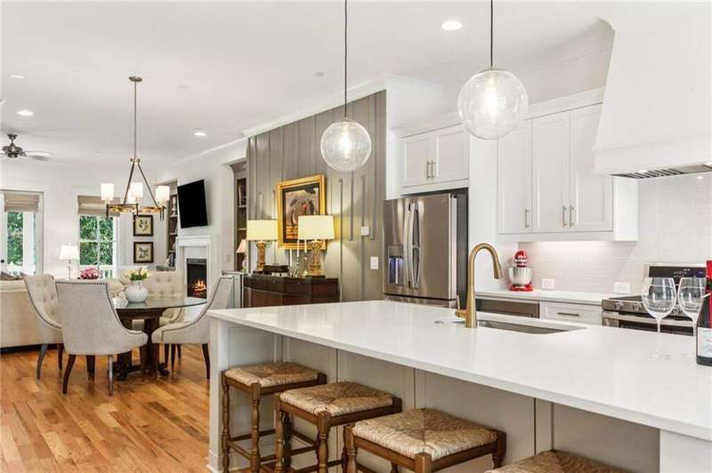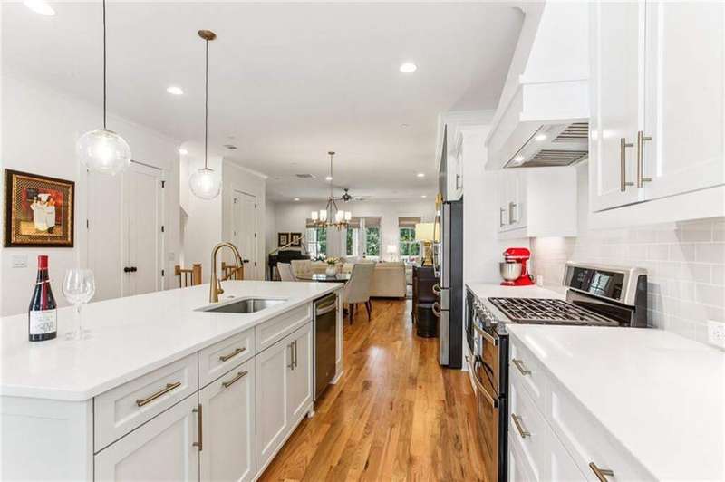 SPECTACULAR luxury townhome with over $45k in upgrades about 1 mile west of the Marietta Square! This home is in pristine condition and shows like a model home! Amazing kitchen with a huge island, quartz counters, stainless appliances and white cabinets. 2 pantries! Huge living space with custom shelving opening to a beautiful covered rear porch that overlooks undeveloped greenspace! Upstairs is a primary suite with a frame-less glass door shower, double vanity of quartz counters, and a massive walk-in custom closet. In fact, every closet in the home has been upgraded to custom. FULL finished basement featuring a 4th bedroom/den/office with a full bath. Lower patio with a beautiful view. Large garage with a new epoxy floor, real hardwoods throughout all 3 floors! This home is in the back of the neighborhood in a fabulous location, overlooking permanent greenspace!