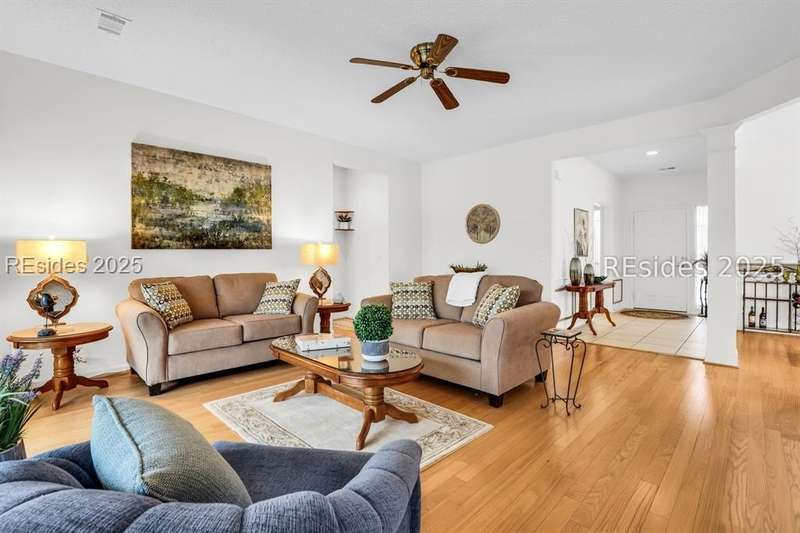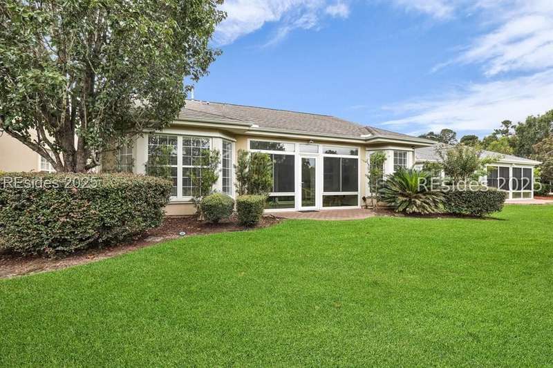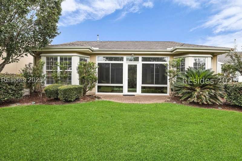 Welcome Home! This desirable Crane floor plan sits on a quiet cul-de-sac near Hidden Cypress amenities. Enjoy the enclosed porch with peaceful views of cranes, herons, and egrets. Inside, the home offers 2 bedrooms, 2 baths, and a versatile den/office with French doors. The eat-in kitchen with bay window is perfect for casual meals, while the formal dining area is open to the Great Room. The primary suite features a bay window, walk-in closet, and bath with double vanities, soaking tub, and separate shower. The guest bedroom and full bath is in a separate area which provides privacy for your guests. The laundry room connects to a 2-car garage with pull-down stairs to attic storage. Located in Sun City Hilton Head, an active adult community with 100+ clubs, community theater, softball league, woodworking shop, dog park, and endless amenities.