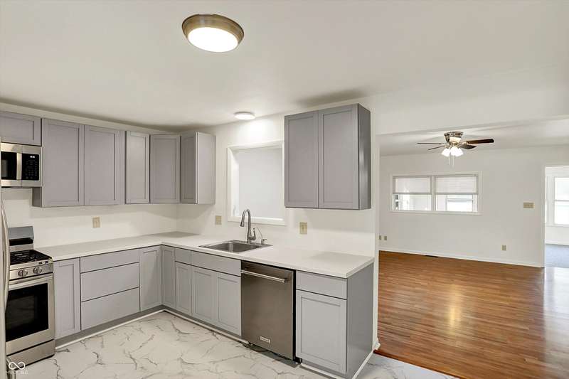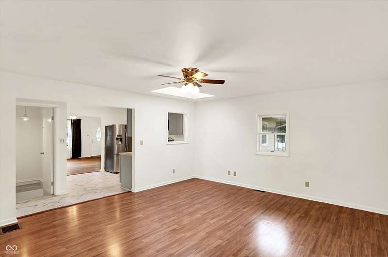 Welcome to this beautifully updated ranch in Brownsburg, perfectly situated in a prime location! This four-bedroom, two-bath home offers a desirable split floor plan, giving the primary suite extra privacy with its own en suite bath, closets, and serene retreat away from the other bedrooms. The heart of the home shines with a beautiful kitchen remodel, featuring all-new cabinets, sink, faucet, lighting, and flooring. Both bathrooms have been stylishly updated with new vanities, counters, sinks, faucets, toilets, and lights, while the hall bath showcases a refinished bathtub and tile. Major updates ensure peace of mind, including a new roof with transferable warranty and a skylight that fills the home with natural light. Additional improvements include freshly painted basement floors and walls, a painted garage floor, and a mini barn with a new roof and exterior paint. Outdoor living is just as inviting, with an updated front porch with custom-made railings and back patio-perfect for morning coffee or evening gatherings. This home blends comfort and convenience with thoughtful updates throughout. Enjoy easy access to shopping, dining, parks, and Brownsburg's top-rated schools-all while living in a move-in ready ranch that's been lovingly maintained and upgraded. Don't miss your chance to own this turn-key home in one of Brownsburg's most sought-after locations!