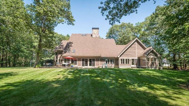 A beautifully crafted custom-designed Contemporary offering comfort, elegance and functionality. Spanning 3 levels of finely tailored finishes & dramatic architectural lines, this open concept home w/ a covered barrel front entry, soaring ceilings, a winding staircase & a Juliette balcony, features 5 BR's, 5 baths & 3 half baths. The chef's Kitchen offers granite counter-tops, SS appliances, a large island, coffee station/bar area & a huge walk-in pantry/laundry area. Dining rm. & Breakfast rm. The sunken Family room, w/ wet bar & sliders to a spacious outdoor patio, has a floor to ceiling fireplace w/ stunning stone accents that exude warmth and refinement. The stylish Den/Office & lovely Living room also have fireplaces. Expansive first floor primary suite with built-ins & his/her baths. The lower level features a Rec/Media room w/ Kitchenette & half bath, a spectacular wine-cellar, a Music room & unbelievable storage area. The beautiful, lush yard offers privacy & room for a pool!