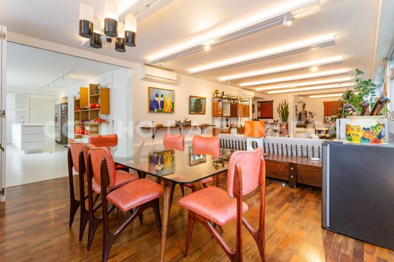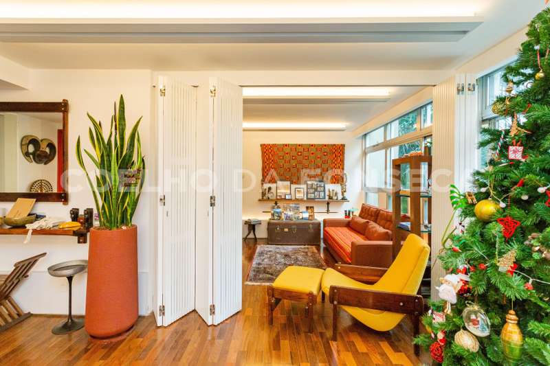 A terceira suíte está atualmente sendo utilizada como sala íntima, mas é totalmente reversível e atualmente possui fechamento optativo, com porta deslizável que há também na ampla cozinha americana. A suíte master foi ampliada e possui closet walk in. O living apresenta três ambientes muito bem distribuídos nessa planta inteligente e funcional.