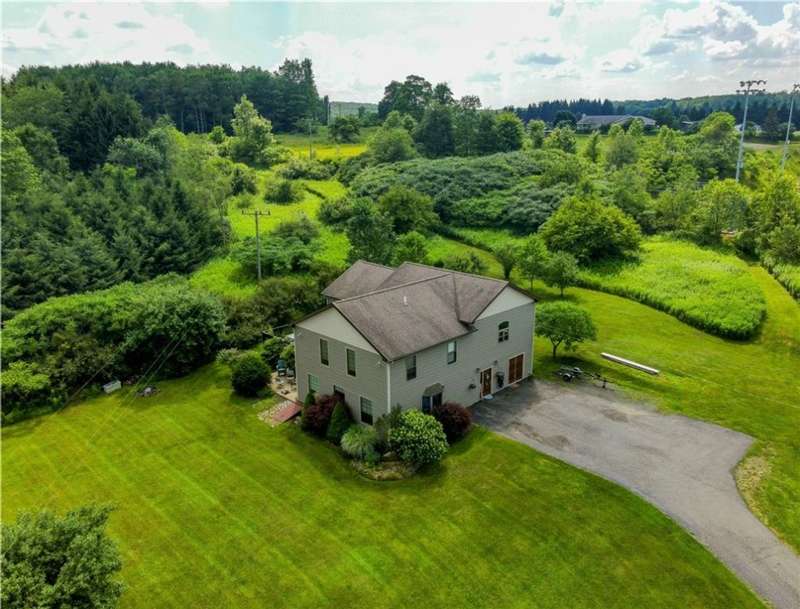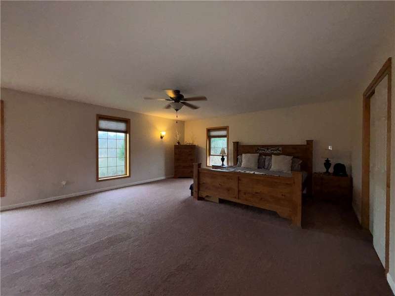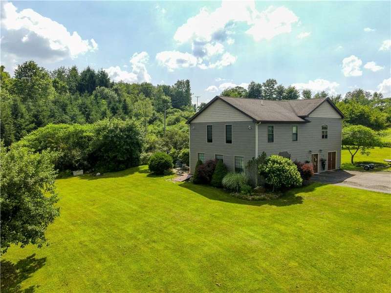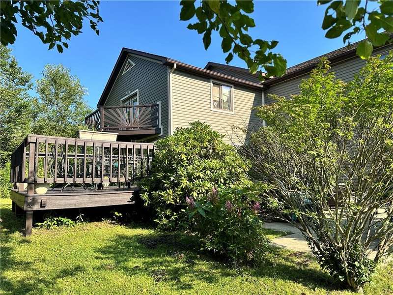 Welcome to this wonderful home boasting over 3,400 square feet of living space and approximately one acre. From the moment you step inside, the entry greets you with the warm and welcoming charm of a knotty pine ceiling and wood accents that extend throughout much of the home. The oversized living room radiates with natural light, featuring several windows and a sliding glass-paneled door that opens to a concrete patio, then transitions to a tiered deck, perfect for outdoor entertaining and family gatherings.The large open-concept kitchen is both functional and inviting, offering space for a dining area, a sitting area, and a counter bar with an electric cooktop and seating. Included with the sale in addition to the cooktop are a gas range/oven, microwave, and dishwasher. A sliding glass door provides access from this room to the tiered deck as well. The first-floor laundry room provides added convenience and connects to a storage room housing one of the gas forced air heating systems and a 200-amp electric service panel.A distinctive wooden staircase leads to a second-floor family area allowing space for relaxing time. The primary bedroom offers a luxurious ensuite with a soaking tub, walk-in shower, and linen closet for towels and extra storage. Unique features include a secondary bedroom with large glass doors opening to a private balcony and another bedroom with a fun loft accessible by a ladder?sure to be a hit with children.This home is serviced by city water and sewer, and its two gas forced air furnaces ensure year-round comfort. The property also includes a detached two-stall garage with workspace, adding practicality to its charm. Let this delightful home share the space, comfort, and unique character it has to offer you.