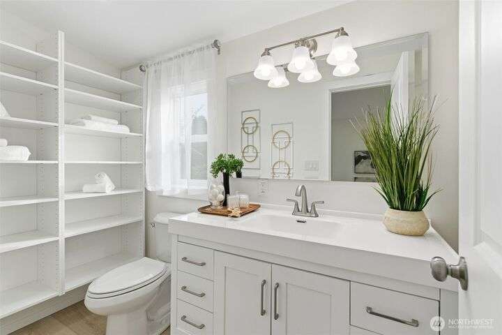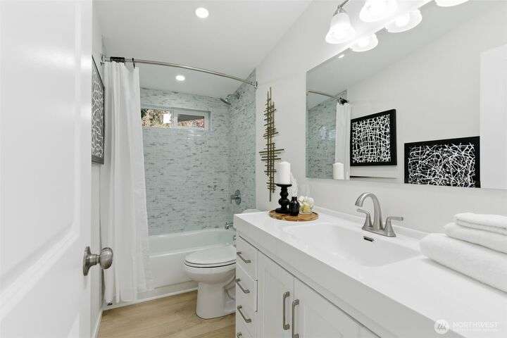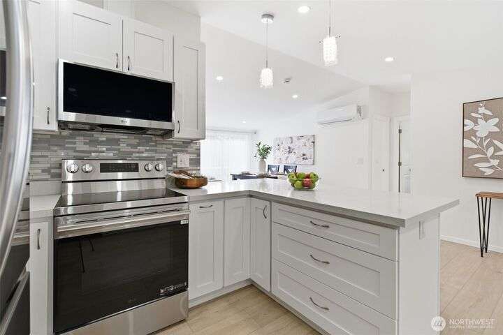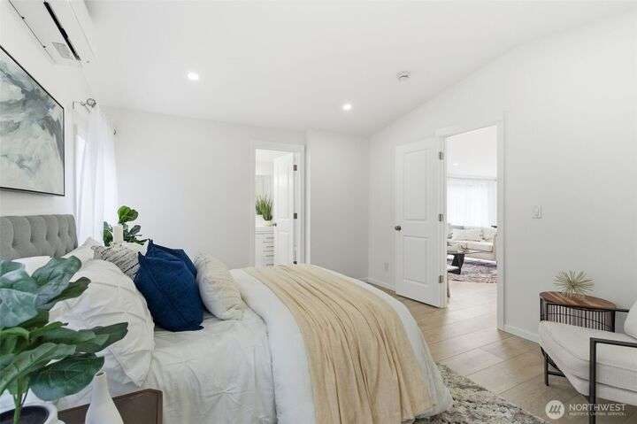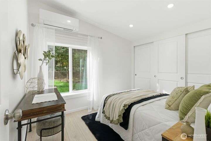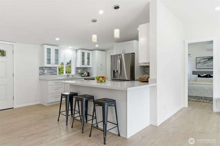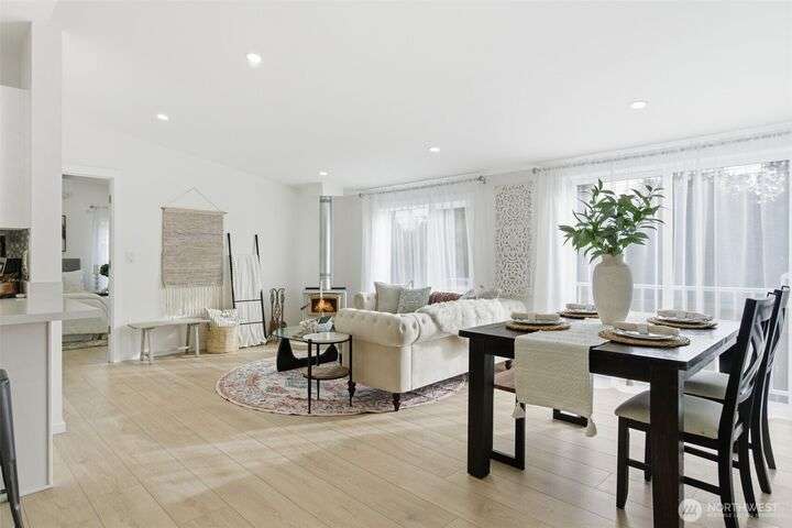 Remodeled to the studs & reimagined with modern style, this 3-bed, 2-bath home lives large. The bright, open floor plan invites you in, while cozy living areas & a well-appointed kitchen with high-end SS appliances offer space for entertaining & relaxation. A wood stove & 4-zone mini-split A/C provide year-round comfort. Just off the kitchen, find a convenient laundry area with California Closets® shelving. The spacious primary suite includes a full ensuite with built-in shelving, while two bedrooms & a second full bath complete the home. Outside, enjoy a large patio, new sod, Hardie® Plank siding, roof & vinyl windows. Automatic gated 4-car asphalt driveway adds privacy. Near Paine Field, Boeing, Mukilteo schools & shops. Welcome home!