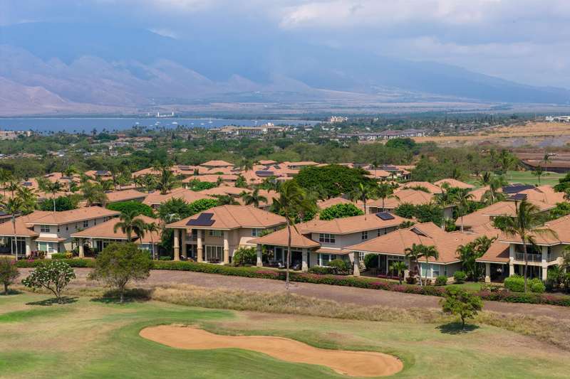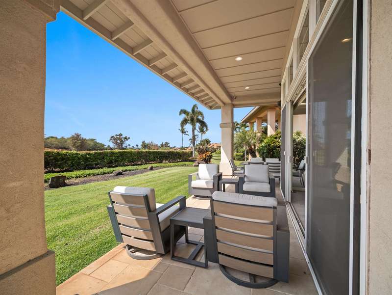 Fresh, Modern, and Distinctively Hokulani Experience the best of South Maui living in this beautifully updated Hokulani Golf Villas residence — a popular floor plan featuring the coveted downstairs primary suite for ease and comfort. The 12-foot ceilings create an airy sense of space, framing panoramic views of the 18th fairway of Maui Nui Golf Course. Enjoy morning coffee or sunset wine from your covered lanai with powerful Haleakala views as well as the sparkling Pacific Ocean. The home blends luxury and livability with African mahogany cabinetry, Sub-Zero refrigeration, Italian ceramic tile, and new flooring, all complemented by designer furnishings that reflect a contemporary Maui aesthetic. Hokulani Golf Villas is a gated, stand-alone community offering the privacy of a single-family home with the convenience of condominium ownership — ideal for a lock-and-leave lifestyle. Resort amenities include a beautiful infinity-edge pool, spa, and clubhouse, all surrounded by the lush greens of Maui Nui.