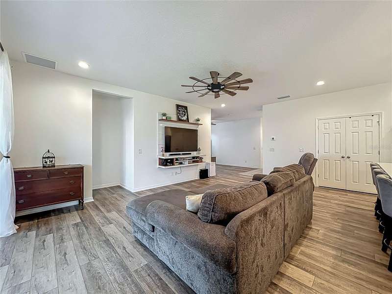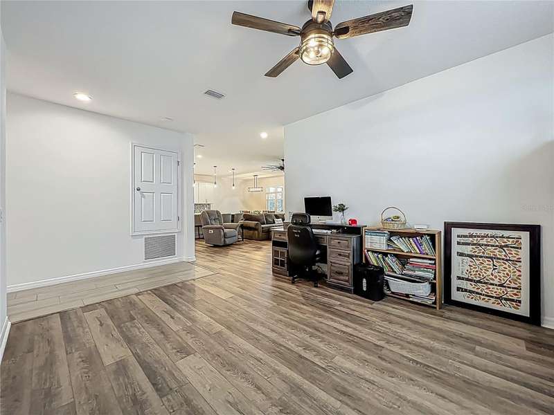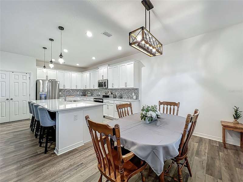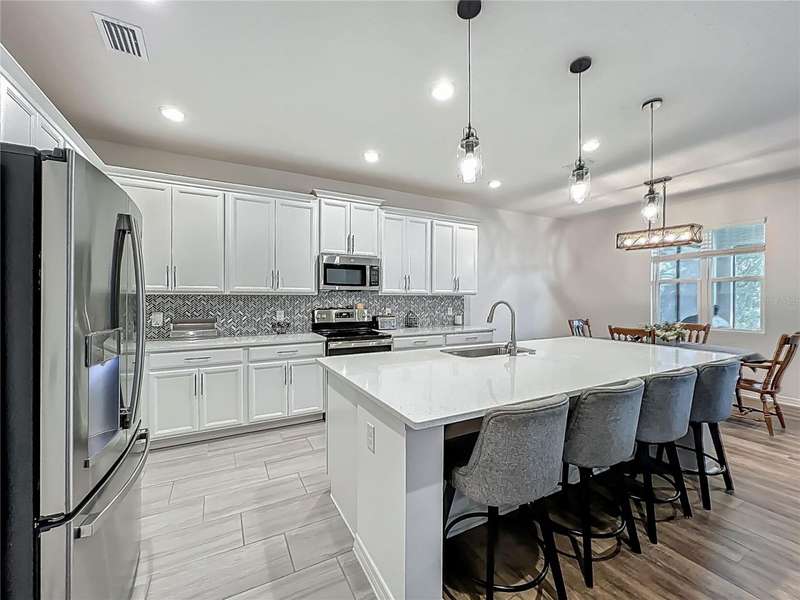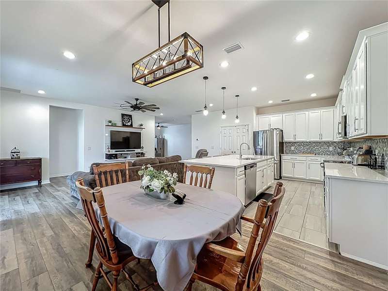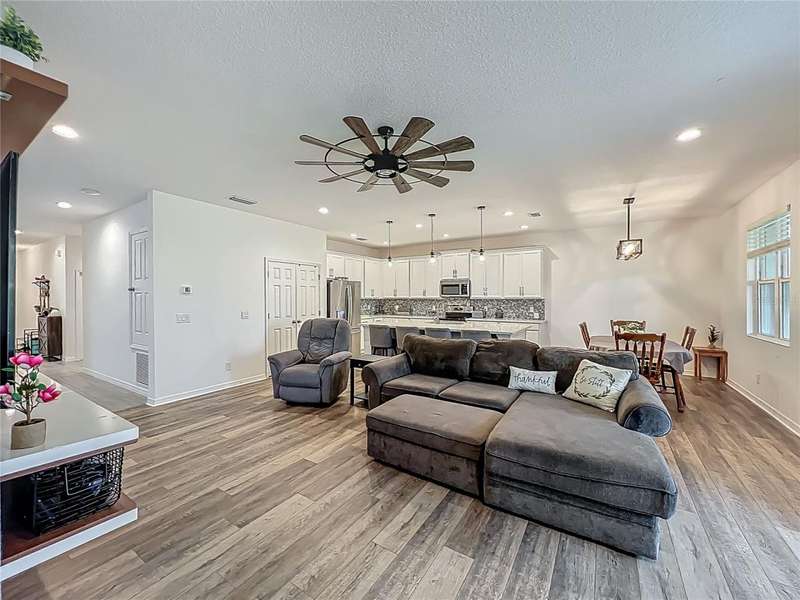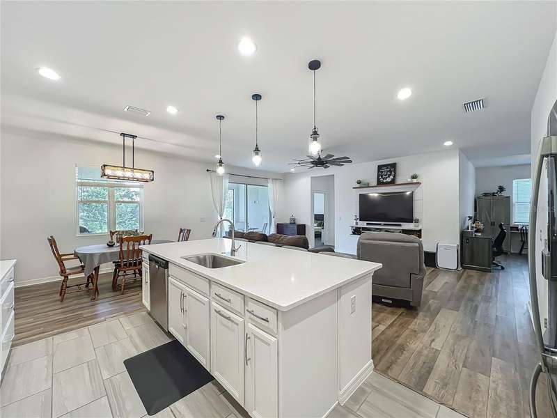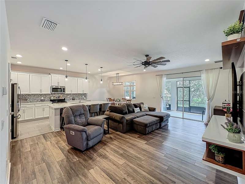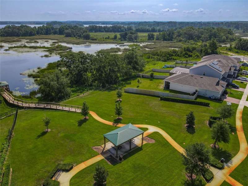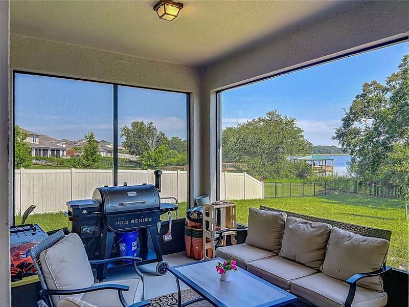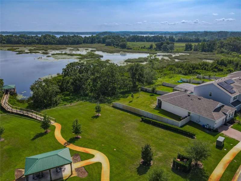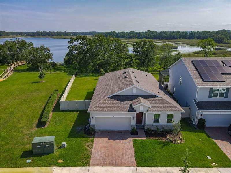 LAKE FRONT ON CLERMONT NORTHERN CHAIN OF LAKES! This 4-bedroom, 2-bath beautiful home is located on the vibrant Chain of Lakes in Northern Clermont. This scenic and versatile chain consists of Lake Lucy, Lake Emma, Cherry Lake, and the Palatlakaha River Waterway. Perfect for fishing, boating, skiing, air boating, and exploration! Home features many upgrades throughout: Termite bond, luxury plank vinyl flooring, beautiful ceramic tile, double pane windows, new landscaping in front, newly screened rear porch, and large fenced-in yard. Fantastic open kitchen with stainless steel appliances, quartz countertops, 42-inch cabinets, back splash, breakfast bar, pendant lighting, recess lighting, and large closet pantry. Floor Plan also features a split bedroom plan, an inside laundry room, a tray ceiling in the primary, dual sinks in both bathrooms, plus a bonus room that could be a formal dining room, office, exercise room, or playroom. So much to offer and only a 2-year-old home! Located in a wonderful community and on a dead-end street, the community dock and a pavilion are conveniently located next to the home. Also, features a community pool, playground, park, and sidewalks throughout. Great location too! Only 10-15 minutes to the FL Turnpike, 45 minutes to downtown Orlando, and all theme parks, and only 20 minutes to Historic Downtown Clermont. This charming downtown area features historic houses & buildings, retail shops, restaurants, breweries, & nightlife. And only 20 minutes South of The Villages. Are you ready to embrace the lakefront lifestyle today in this stunning nearly new home? Start your adventures by building your own boat dock and enjoy everything this beautiful setting has to offer!