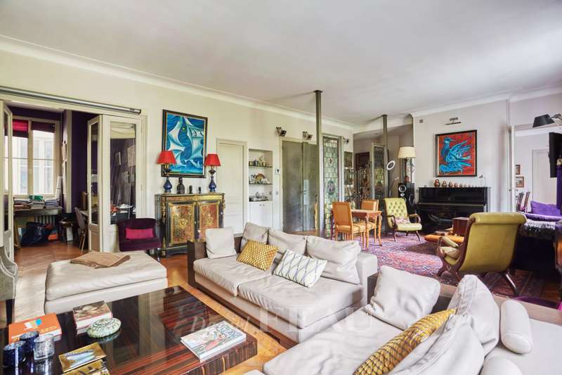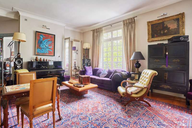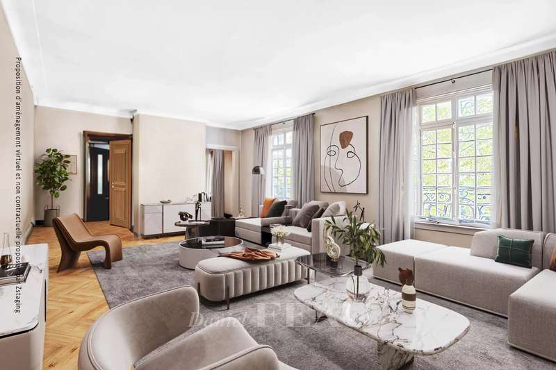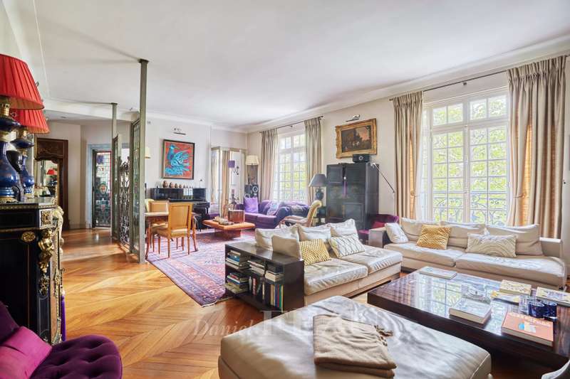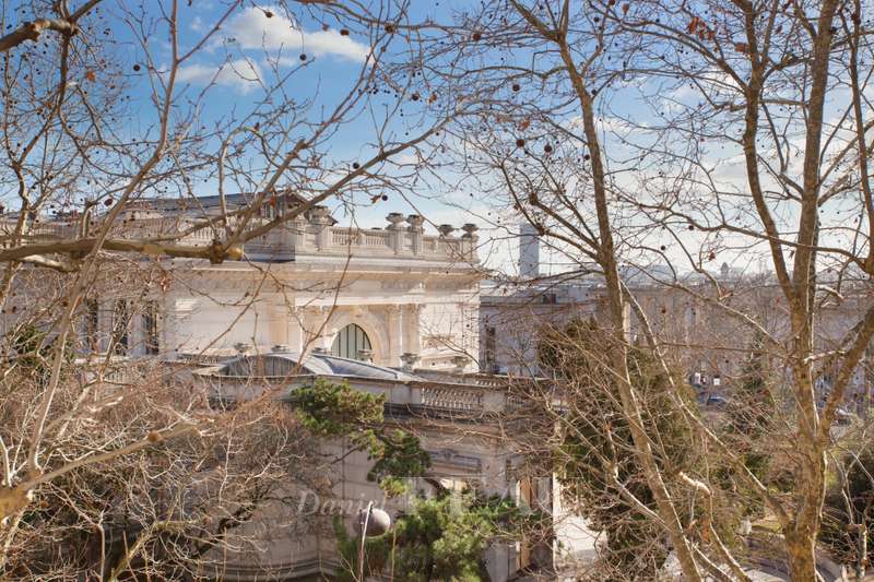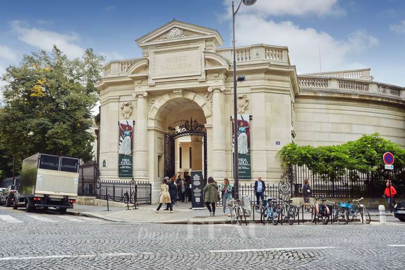 This spacious apartment enjoying open views of Palais Galliera gardens and the Eiffel Tower is on the 3rd floor of an early 20th century building. It includes a double living/reception room, a dining room, a study, a kitchen with dining facilities, four bedrooms and three bathrooms. With a cellar.