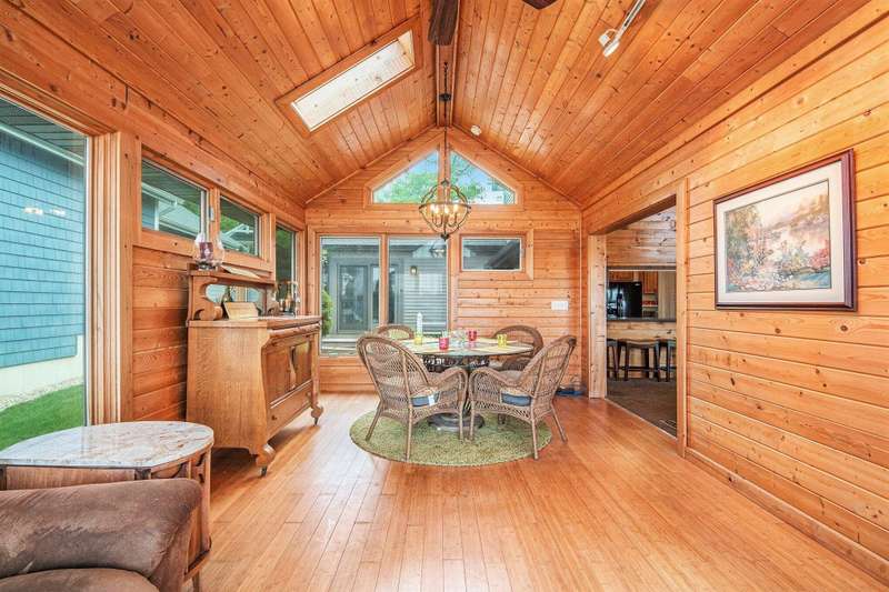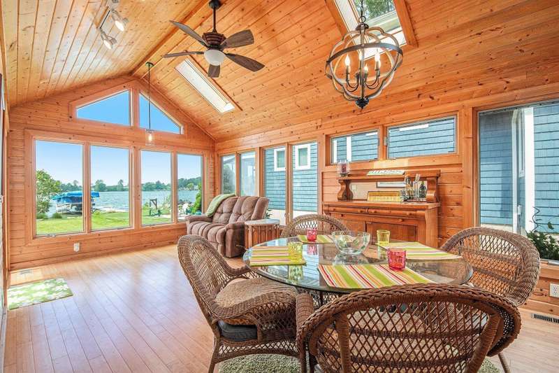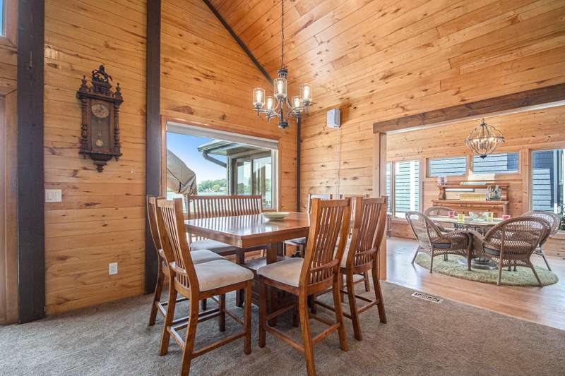 Enjoy panoramic views of all-sports Morrison lake from this beautiful 3-bedroom, 2-bath home with 80 ft of private frontage. The inviting sunroom is perfect for morning coffee or evening relaxation, while the large bedrooms offer plenty of space for family and guests. The spacious primary suite includes an updated bath for added comfort. Step outside to a new maintenance-free deck, and a lakeside patio complete with a built-in firepit. The oversized garage features a workshop area and plenty of room to store all your lake toys. There's even a fenced-in dog run for your four-legged friends. Major updates include a new roof in 2020, furnace and AC in 2023, and a full-sized generator for peace of mind. This is lake living at its best-charming, well-maintained, and ready to enjoy year-round!