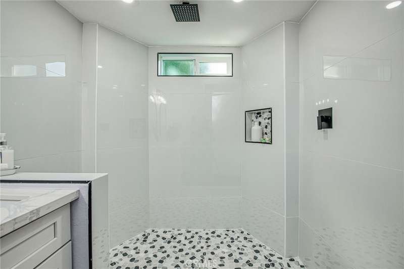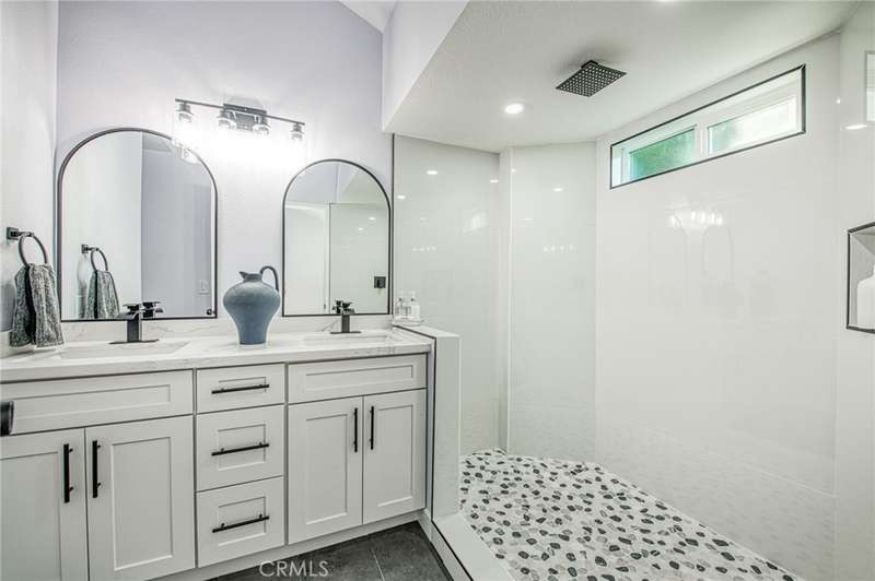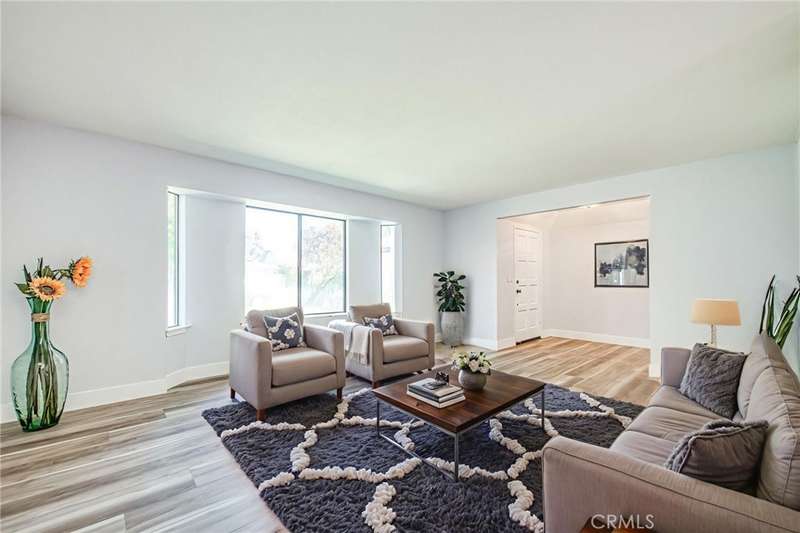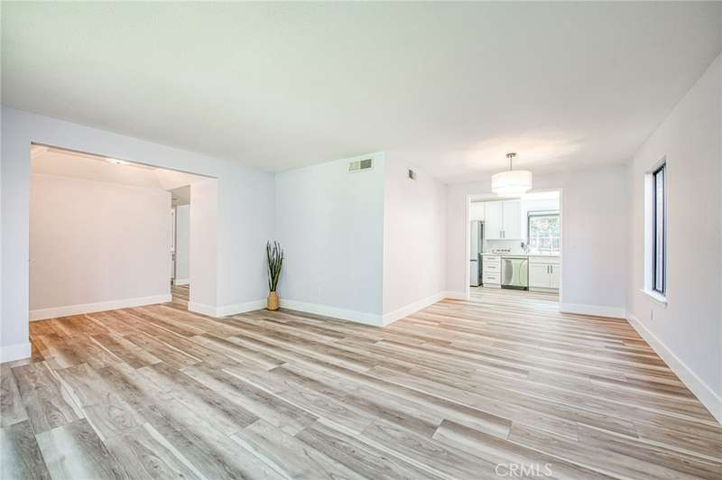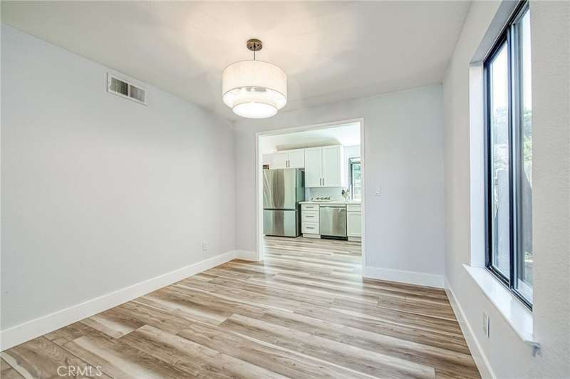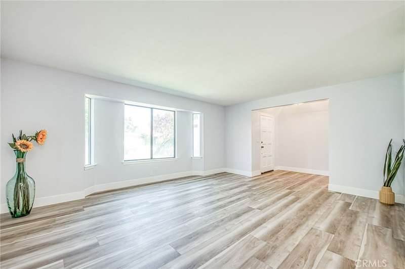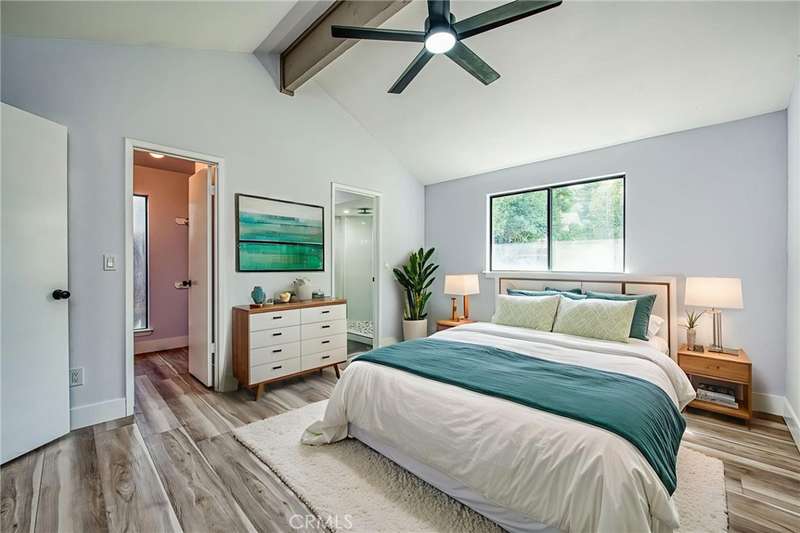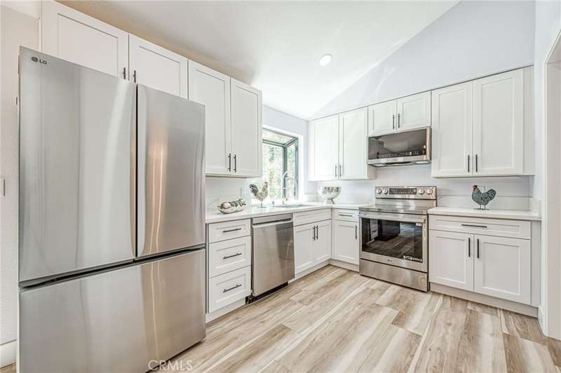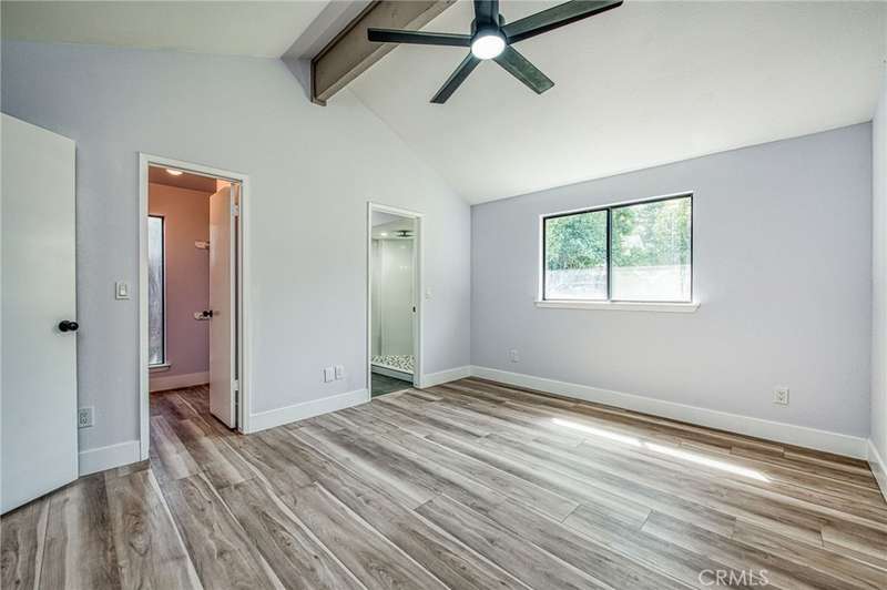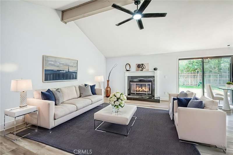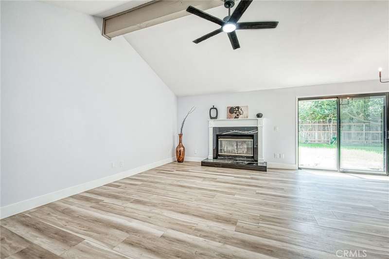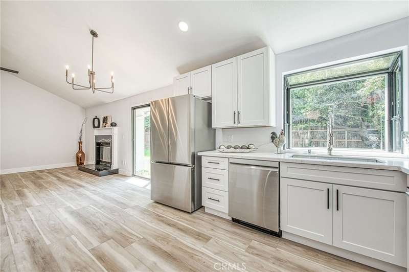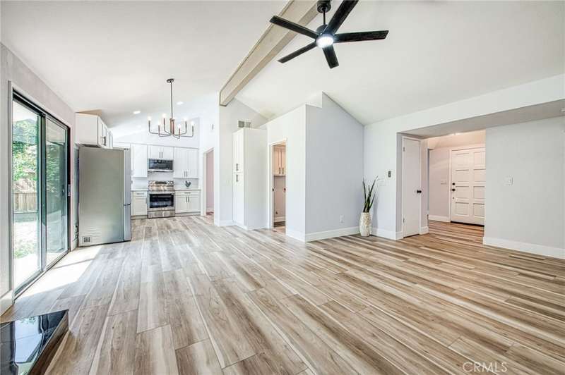 Completely renovated 3-bedroom, 2-bathroom home in desirable Clovis Unified School District (Clovis North High School). This 1,596 square foot single-story residence features luxury waterproof vinyl flooring throughout, quartz countertops in kitchen and both bathrooms, and stainless steel appliances.The open-concept living area showcases vaulted ceilings with exposed beams and a fireplace as the focal point. The fully remodeled kitchen has been enlarged both in length and height, offering exceptional storage with white shaker cabinets that extend to the ceiling after soffit removal. Premium LG stainless steel appliances include a counter-depth refrigerator. The expanded kitchen flows seamlessly into the dining area through an opened wall, creating an enhanced open-concept design that extends to the sliding door. The primary suite includes a walk-in closet and spa-like bathroom with dual vanities and an oversized tiled shower with ceiling-mounted rain shower head.Recent updates include fresh interior and exterior paint, complete popcorn ceiling removal, new light fixtures and ceiling fans throughout, new water heater, and completely remodeled bathrooms. The property sits on a manicured lot with established landscaping and features a durable tile roof. Move-in ready condition with contemporary finishes and thoughtful design details throughout.Some photos have been virtually staged.