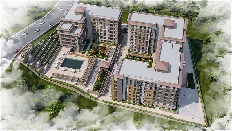 Built on a total area of 10.000 m², the project is equipped with social facilities, indoor and outdoor parking lot, a nursery, children's playground, outdoor swimming pool, basketball court, gym, sauna, Turkish bath, communal garden, 24/7 security and security cameras, concierge and reception.