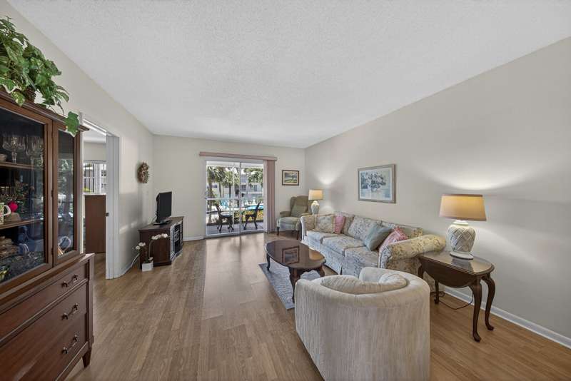Welcome home to this peaceful, well maintained 55 + condo in the beautiful city of Lighthouse Point, perfect for seeking your year round residence or seasonal retreat. From the moment you walk in you will enjoy the brightness and pool viewsThis immaculate 2 bedroom 2 bath condo with new laminate floors in the living areas and primary bedroom is ready for a new owner to enjoy!Active community with newly remodeled club house, bocci ball court, shuffle board and a putting green. No lease or pets.