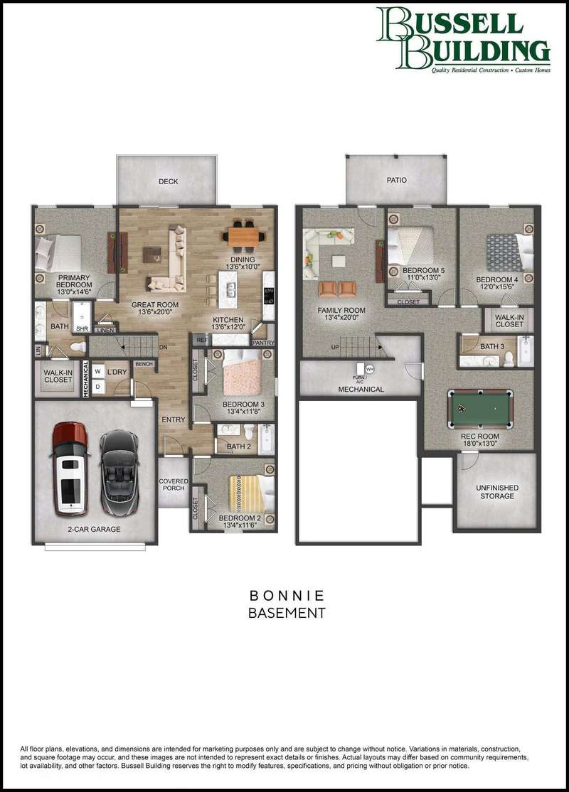 The Bonnie Basement blends open-concept living with thoughtful design. The main level features a spacious great room, dining area, and a modern kitchen with a large island and walk-in pantry. The primary suite offers a walk-in closet and luxury bath, with two additional bedrooms and a full bath nearby.Downstairs, enjoy a finished basement with a family room, rec room, two bedrooms, and a full bath--perfect for guests or entertaining. A walk-out patio and generous storage space add functionality and comfort.Built with Bussell Building's signature craftsmanship and attention to detail througho*Photos may be of a similar home*