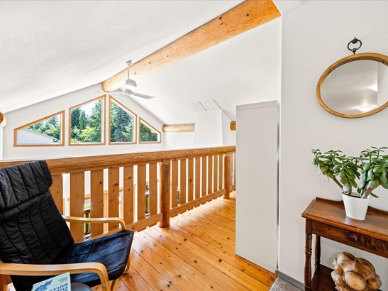 A stunning home in the sought after Glen neighbourhood. Thoughtfully designed and solidly built, this property blends timeless craftsmanship with modern updates, perfect for families or anyone seeking space with income potential. Inside, find updated spaces with hardwood floors, new carpet, heated kitchen and bathroom floors, and fresh paint. Striking timber beams and vaulted ceilings create a warm, airy main living area. A den and upper nook offer ideal flex spaces for office use or play. The legal, newly renovated 1-bed suite above the garage with separate hydro, driveway, and laundry offers excellent income potential. Enjoy a 6-ft crawlspace for storage, double garage, 4+ parking spots, covered wrap-around deck, garden space with irrigation, and a low-maintenance yard with storage shed.