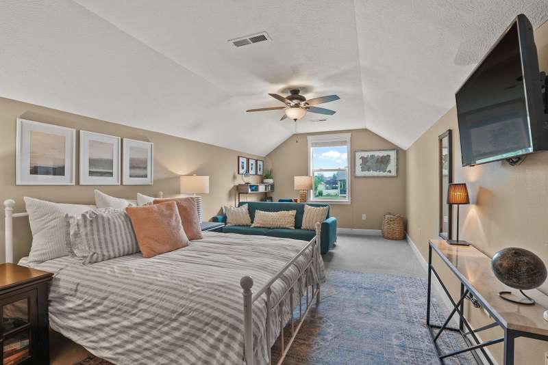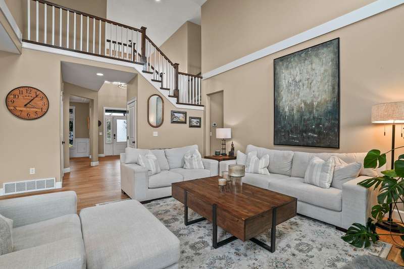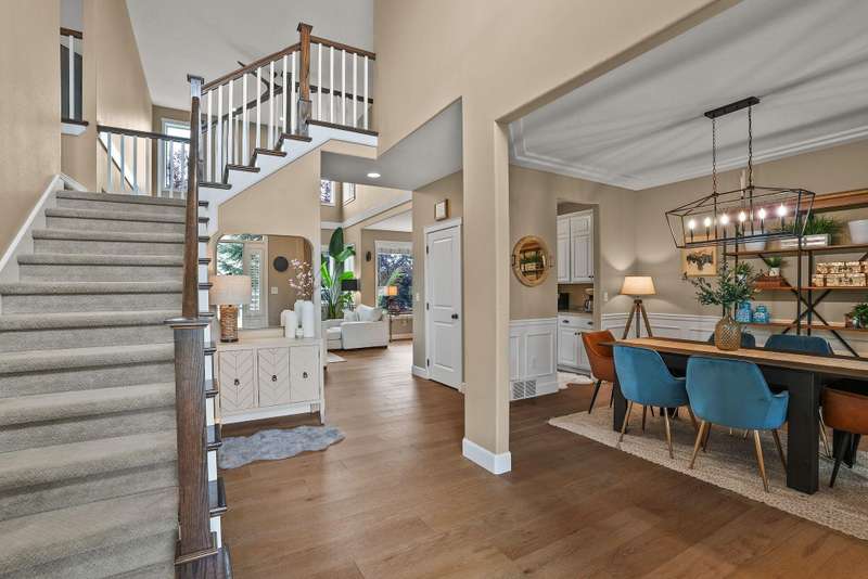 Greeted with an open & inviting entryway, this home offers 6 bedrooms, 4 bathrooms & tasteful updates. With a thoughtful & ideal floor plan, the natural light gleams throughout. The gorgeous kitchen is a chef‘s dream, providing dbl sinks, updated appliances, & plenty of hard surface counter space for creating your best recipes. Directly connected to the kitchen is a large formal dining area to enjoy those perfect delights! Entertain in the main level great room or for a more secluded space there’s a living area on the 2nd floor or a basement living area ready for your theater system. Plenty of spacious bedrooms to choose from, but the primary suite is amazing with a walk-in closet, full bathroom & private deck to enjoy that morning coffee. The fully fenced backyard oasis caters to anyone, with gorgeous landscaping, patio area, & sports court, all tucked away on an oversized corner lot. The attached 3 car garage access is ideally connected to a cul-de-sac with a convenient location that suits all your needs!