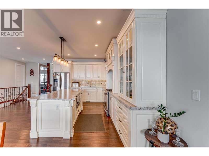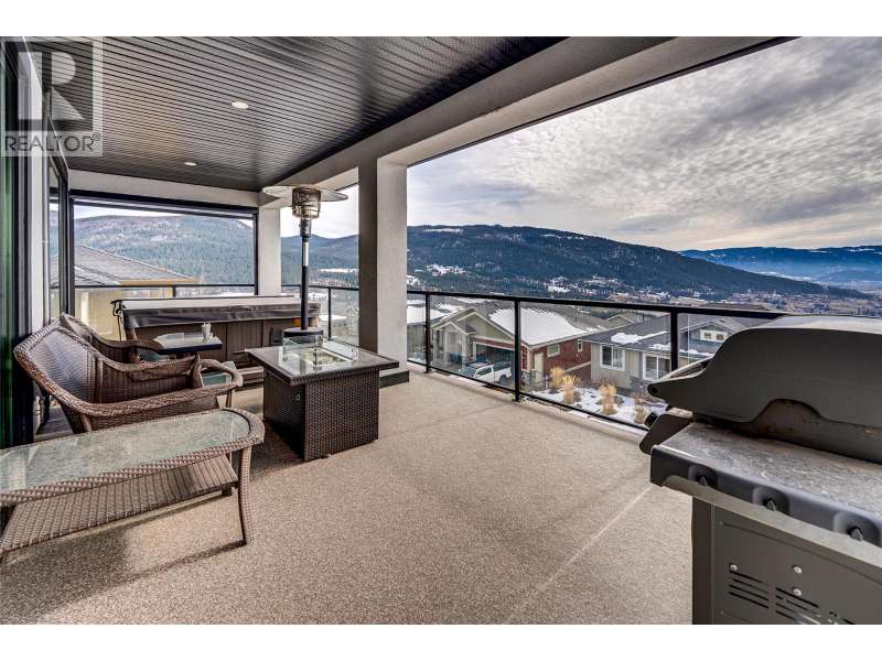 Experience Luxurious Okanagan Living! This exceptional custom-built rancher captures panoramic lake and valley views in the sought-after Foothills, located on a quiet, safe no-through road. Meticulously maintained, it features an expansive open-concept layout, a chef’s kitchen with soft-close cabinetry, a wine rack island, a high-end gas range, and granite countertops — ideal for entertaining. Step outside to a covered deck with a hot tub and a natural gas BBQ hookup, creating the perfect retreat for Okanagan summers. The main-floor primary suite offers sweeping views, a walk-in closet, and a spa-inspired ensuite with double sinks and a custom walk-in shower. A dedicated office provides the perfect workspace. The lower level includes a family room, media/theatre room, and guest bedroom. A fully self-contained two-bedroom suite with private entrance and separate utility meters provides excellent rental income or a private space for visitors. Low-maintenance landscaping makes for easy lock-and-go living. Just minutes to Silver Star Mountain Resort and downtown Vernon, this home blends luxury, lifestyle, and location. (id:58403)