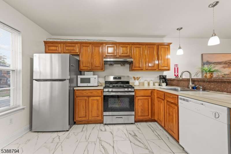 This move-in ready three bedrooms, two full bathrooms, one half bath single family home duplex style (without HOA fee) distinguishes itself by its construction in 1998, its spacious open concept layout, primary bedroom suite, beautiful private deck and attached one oversized car garage directly access to the house. Located at the Commerce Village section this home is very close to NYC Bus Stop, schools, shopping, convenient to Union Train Station to NYC and easy access to major highways. First level offers bright, airy eat-in kitchen with new tile flooring, new refrigerator, new gas range, new exhaust fan, breakfast bar opens to dining room and living room. Bamboo wood flooring in dining room and living room. Sliding door from living room access to newly painted deck. Half bath on this level. Second floor features primary bedroom with two closets and its own bathroom. Two additional bedrooms and hall bathroom. Ground level offers a large room can be an office or entertainment room, laundry room, storage space and garage on this level. Central air conditioning and furnace are three years, driveway newly paved. This home must be seen to be appreciated.