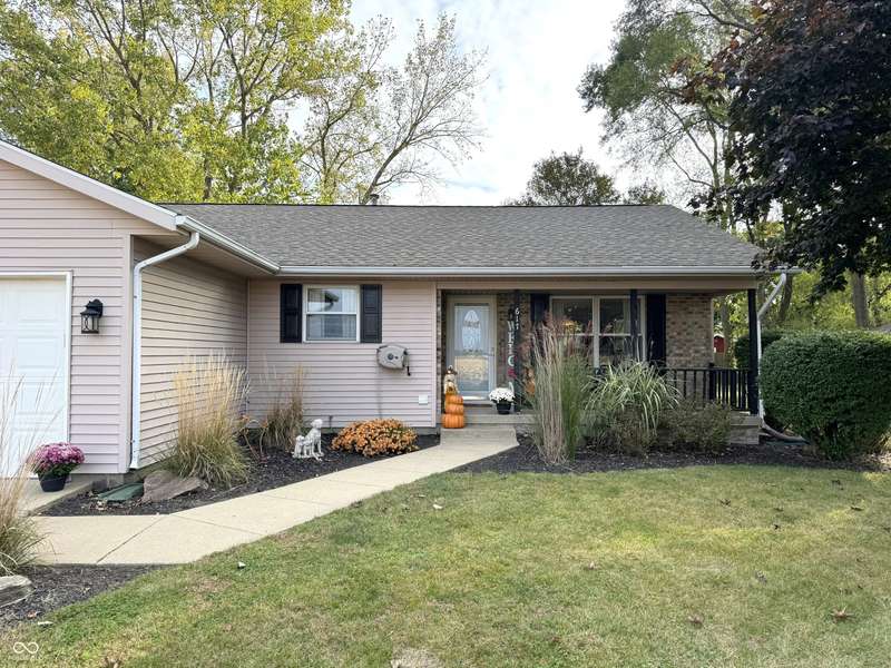 Welcome home to this charming 2-bedroom, 2-bath ranch perfectly situated on a beautiful lot with peaceful country views. This well-maintained home features an updated kitchen complete with all appliances, an eat-at bar, and a spacious dining area that opens to a large family room with vaulted ceilings-perfect for entertaining or relaxing. The primary suite offers his and her closets and a private bathroom, while the laundry area off the garage includes a convenient small office space. Step outside to enjoy the covered front porch or unwind on the back patio overlooking the nicely landscaped yard. With an attached two-car garage, mature landscaping, and move-in-ready condition, this home has it all. Don't let this one get away!