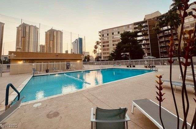 Watch all the excitement Las Vegas offers right from your terrace! The view of F1 racetrack from the 8th floor is unmatched. Topgolf, restaurants, and all Strip amenities are at your whim. This 2 bed 2 bath high rise location is well appointed and the community provides everything from guest parking, fitness center, security, pool, and storage. This is not your average condo. View it today and lock in your front row seat to the upcoming F1 race!