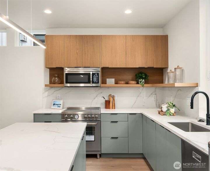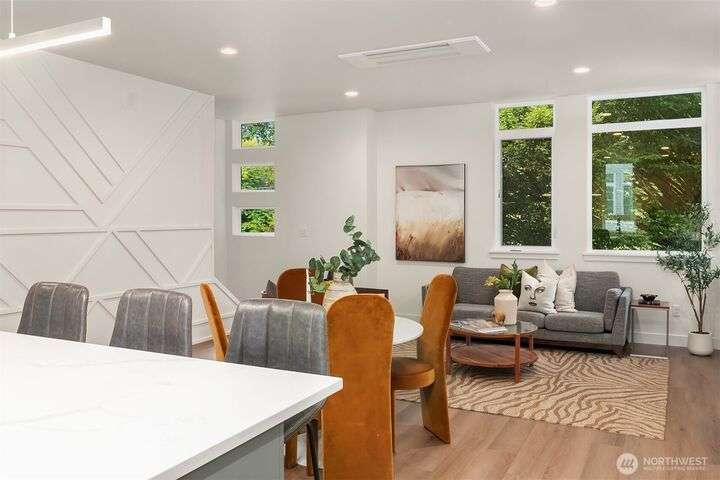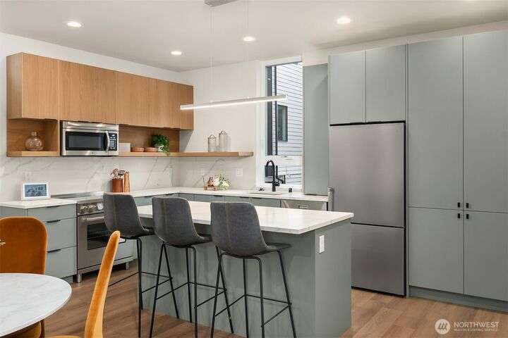 Crafted by respected local builder BriKat Homes, this new townhome community is nestled in the heart of Wallingford—one of Seattle’s most beloved neighborhoods. Stylish, high-quality finishes elevate the interior, with two main-level bedrooms and bath ideal for guests or a home office. The expansive great room features Bertazzoni appliances, a designer feature wall, generous storage and powder room. Upstairs, find a luxurious primary suite occupying entire top floor. Soak in the sun or host with ease on your private rooftop deck. Designated EV-ready parking adds everyday convenience. Plus, included washer/dryer! Located just blocks from Green Lake, Woodland Park, Fremont, and Wallingford dining—this is city living at its best.