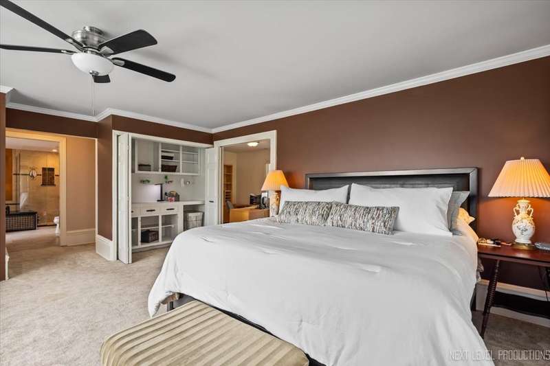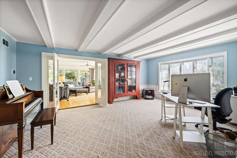 Welcome to this wonderful 4-bedroom, 2.5-bath home offering over 3,300 sq. ft. of living space, ideally set on a beautiful corner lot within walking distance to charming Downtown Glen Ellyn! A 2005 addition created an expansive primary suite with its own rear staircase, attached home office, walk-in closet, wrapping station, and convenient hookup for a second washer/dryer. The updated primary bath features a whirlpool tub, separate shower, large linen closet, new lighting 2025, sink 2025, and faucet 2025. The main level showcases bamboo flooring and a spacious family room-also part of the addition-with two walls of windows, custom wood blinds, and a large dry bar, perfect for entertaining. A versatile space off of the family room could be an office, playroom or formal living space with bay window, beamed ceiling, and new blinds adds character, while a cozy reading room offers a quiet retreat. The expansive kitchen features freshly painted cabinetry, marble tile island, room for a 10-foot dining table with dual chandeliers, and brand-new blinds. Upstairs, three additional bedrooms are accessed from the front staircase and are connected to the primary suite with a door for easy access while maintaining privacy. The finished basement adds even more living space, perfect for gatherings. Enjoy the outdoors in the large yard with two separate entertaining areas. This home also offers abundant storage throughout. Recent updates include: freshly painted first floor in 2025, new blinds in multiple rooms 2025, and solar panels installed in 2019 (last year's total electric bill was just $545.79, with $101/month solar payments). HVAC 2005, water heater 2018, roof inspected in 2019, new blinds in the primary suite in 2025. A rare blend of warmth, functionality, and location-close to schools, parks, shopping, dining, and the Metra!