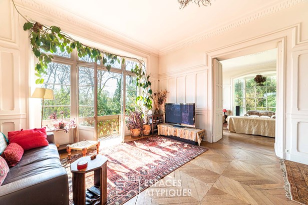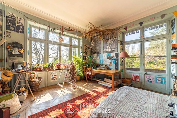 The owners have preserved the original 19th century features: marble fireplaces, refined moldings and impressive ceiling heights. A bohemian decoration enhances the whole, reinforcing the undeniable charm of this residence. On the first floor, four spacious bedrooms, all bathed in light, have balconies with views and dressing rooms. A bathroom and a landing with balcony complete this space. On the top floor, two bedrooms and three attics adjoin each other, also benefiting from exceptional views.