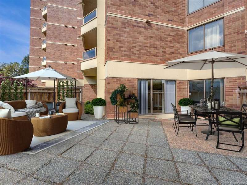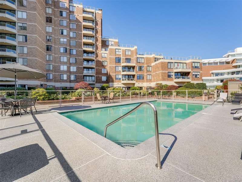Laurel Point, do not Miss this Opportunity! Newly positioned and poised for action! Situated on the ground floor with a southwest facing generous patio; this suite is ideal for an owner desiring a visual or physical extension to their living space, plus practical for small pets or planter gardening. Offering over 1360 square feet with 2 beds/2 baths only steps from the Inner Harbour. The suite is owned by the strata and has been used as the caretaker’s suite. The residual funds will be used to embellish the contingency fund. Amenities include a fitness centre, meeting room, library, plus one of the best equipped workshops in the city. The most amazing amenity is the full-size pool within the courtyard, heated from spring to fall with a common barbeque area. Laurel Point runs smoothly and is a community open to mingling or privacy; whatever your mood dictates. Surrounded by restaurants, hotels and the David Foster walkway, an exciting idyllic lifestyle awaits!