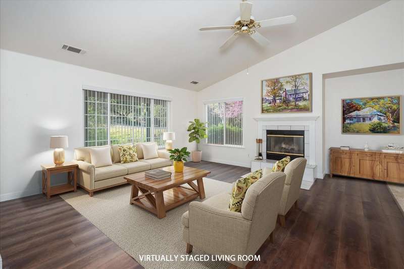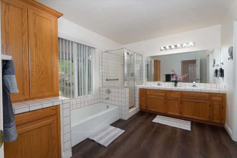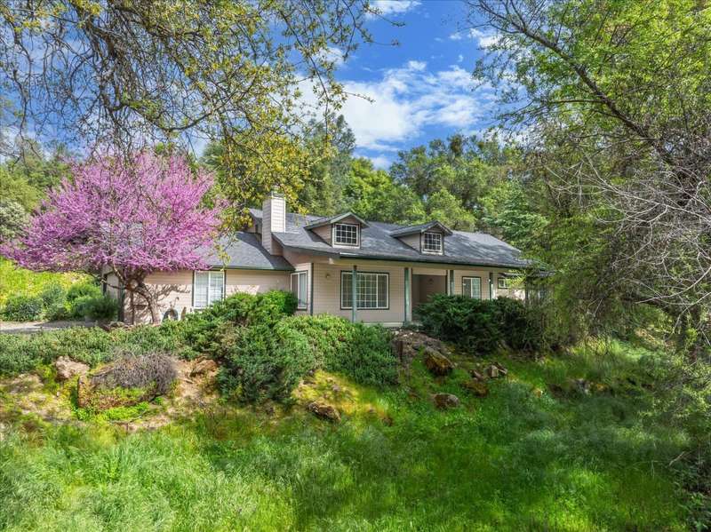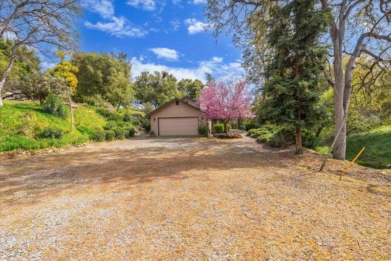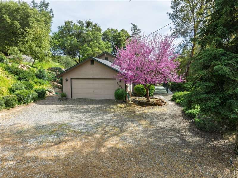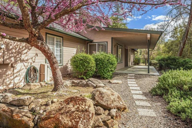 Right across from the 8th tee at Yosemite Lakes Park Golf Course, this beautiful home is in a great location to the Fairway Cafe and the main parkway. This low maintenance lot has a lot to offer with a seasonal creek, 3 patios, mature landscaping w/drip system, shed, plenty of parking and all has been well maintained. Walk inside to the Livingroom with vaulted ceilings and a fireplace to cozy up to, newer appliances, breakfast bar, dinning area, newer vinyl flooring and laundry room. There is a large master suite with a private patio and the master bath has his & her sinks, soaking tub, large shower, separate toilet area and a walk-in closet. Live the mountain life while enjoying close by dinning, grocery, gas, hiking trails, equestrian center and so much more.